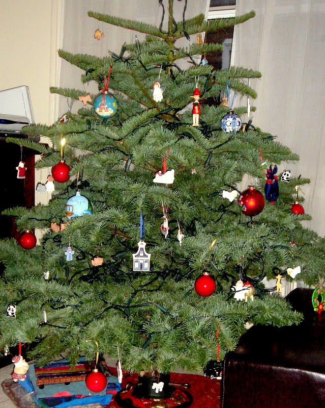 First up, our little Christmas tree in 2006.  This was our first Christmas tree! It was right after we moved to London and we had no ornaments.  We bought a couple to decorate our tree, but it became clear that we needed to start collecting.  It was right after this tree on our first trip to Paris that we decided to buy ornaments from everywhere we visited.  And by we I mean that I somehow managed to convince Randy this would mean less vacation shopping and less clutter around our house 11 months out of the year.