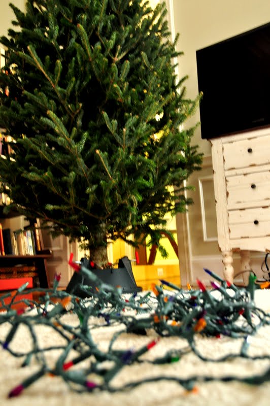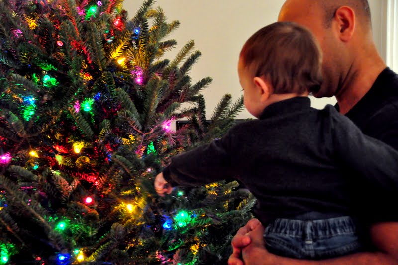 Adam miraculously took a third nap (unheard of) and we were able to put the tree up and the lights up before he woke up.  We waited for him to wake up to help us put the ornaments on.