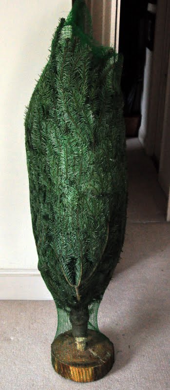 Randy then spent the next two hours trying to cut the bottom of the point down with a dull knife.  Then we spent an hour trying to find a saw in the center of London (note to any shoppers looking, Debenhams, Selfridges, Next and any store near Bond Street do not sell saws).  We finally just bought another tree stand that would accomodate our half sawed, half pointy bottomed tree.