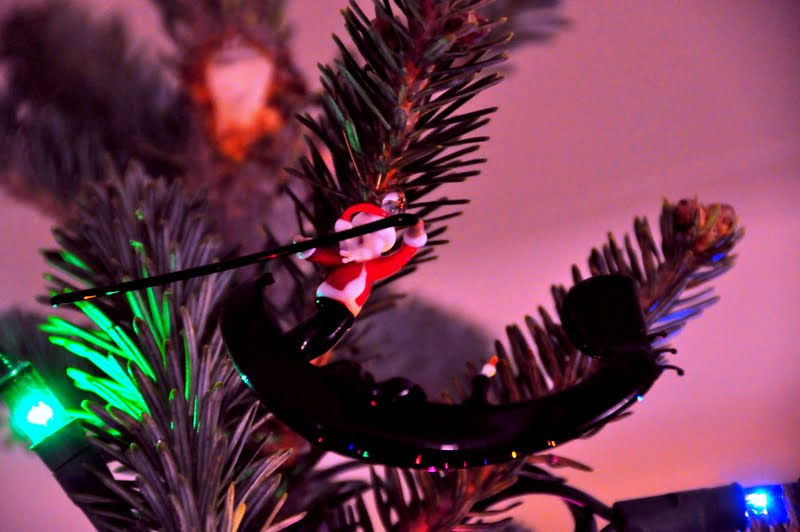 This blue ball and little dog on a boat we bought in California on our first trip there.  We went to San Francisco (before all our friends moved there) and then drove down Route 1 to Los Angeles to go out with the boys, as we call Puraj, Zeb and Brooke, followed by a weekend in Santa Barbara to see our friends Katya and Laith get married.  These ornaments remind me our bike ride over the Golden Gate bridge, our drive down Route 1 where Randy got car sick and I had to take over and drive REALLY slow because I was so nervous of the cliffs.  They remind me of having breakfast with our friends in Santa Barbara and dancing at Katya and Laith’s wedding. It reminds me of getting hot dogs with the boys and having breakfast in LA with Mike Tyson.