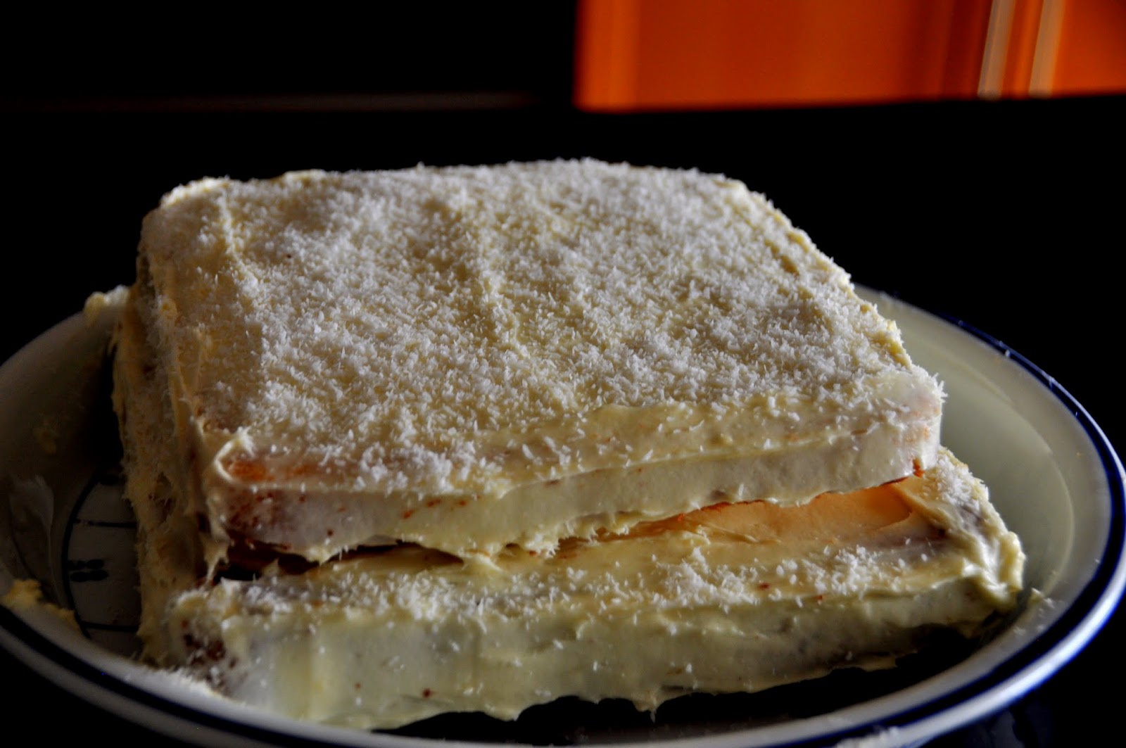 Whenever I bring dessert to someones house I have a go to decadent cake- Barefoot Contessa’s Coconut cake. This cake is delicious. With five sticks of butter and a pound of cream cheese this is definitely a once in a while, for a special occasion cake. But boy is it worth it!!! I made this to bring to a friend’s house this Friday and it was a big hit as always.