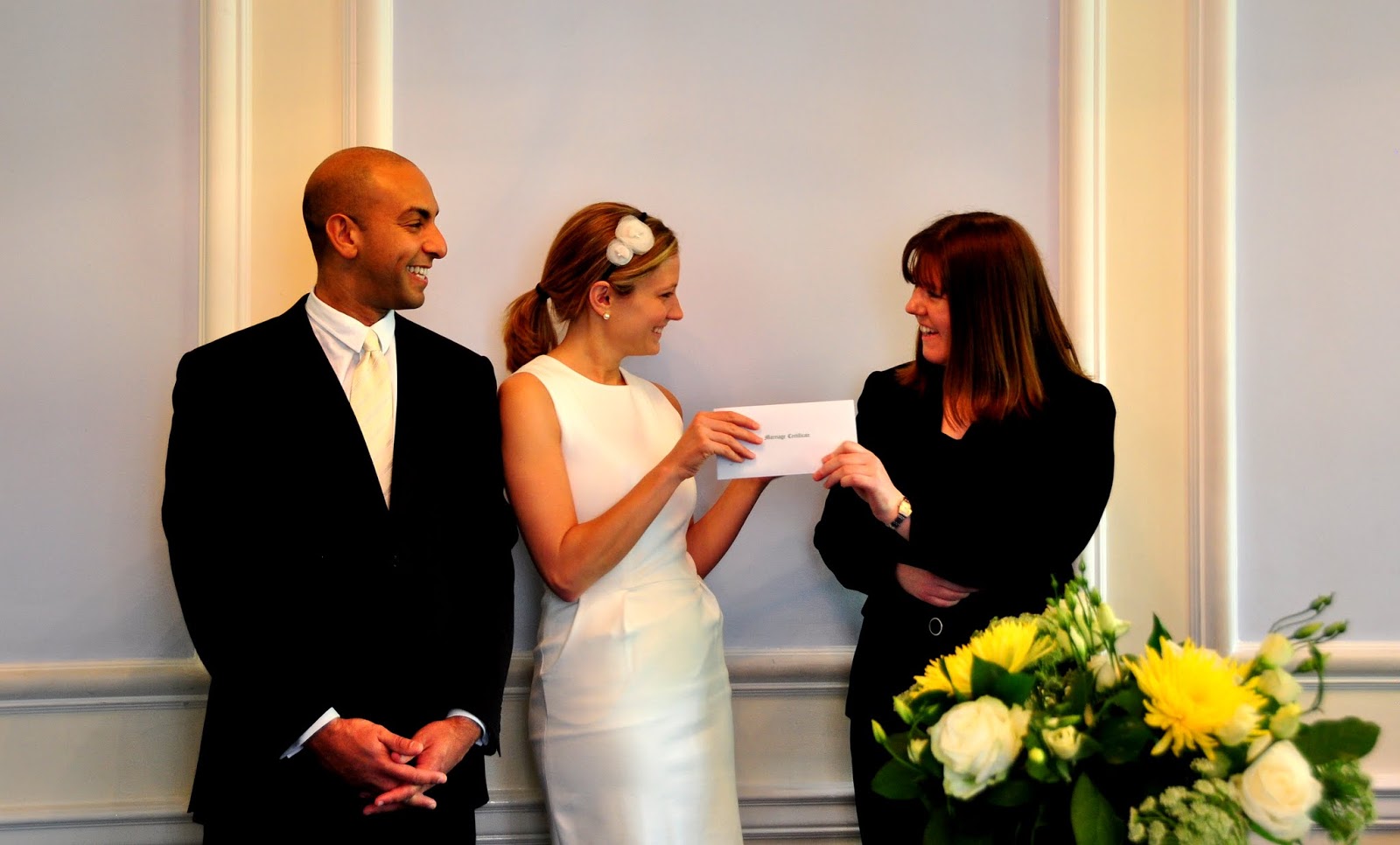 Our registry wedding (what they call City Hall in London) was at Marylebone Registry, it was about a ten minute walk but since we were in heels we opted for a cab.