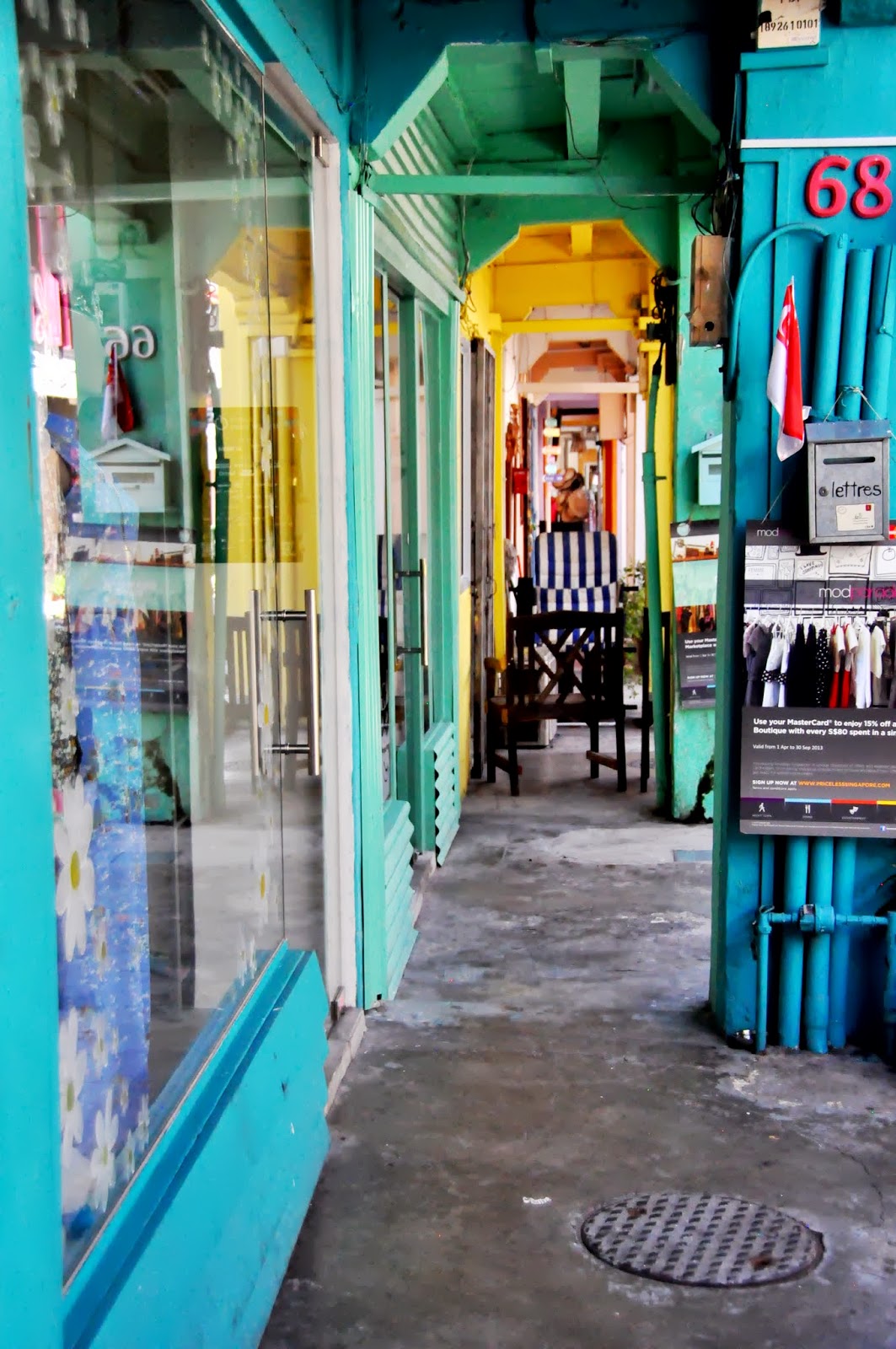 After our full and fun day we headed home and passed out. The next morning we were up and out at a decent hour and started a full day of sightseeing and shopping. We started off in Burgis, a big shopping center full of stalls. We did manage to snag Adam a spiderman watch for a dollar but besides that there wasn’t much to buy. So we walked over to the Arab quarter. Randy had read about Haji Lane which was the cutest little block I’ve seen since my London days probable. I should have know a lane is always going to be cuter than a street, block or avenue. Maybe not a mews, but just about everything else. Most of the stores were closed but it was nice just to look in the windows.