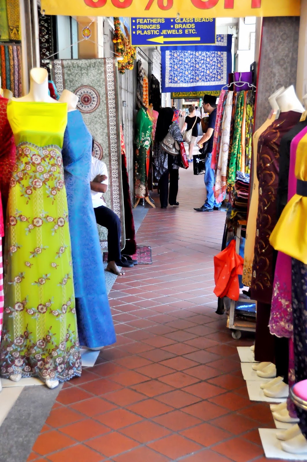 Then we walked over to Arab street which was full of textile stores. If I only had more knowledge about having clothes made I would have bought tons of material but I’m still scared of this unknown. I need to learn because it’s so cheap and worthwhile, especially in Asia. In Manila, you can have someone sew anything for you for a great price but the fabrics aren’t always the best. Maybe next time Singapore.