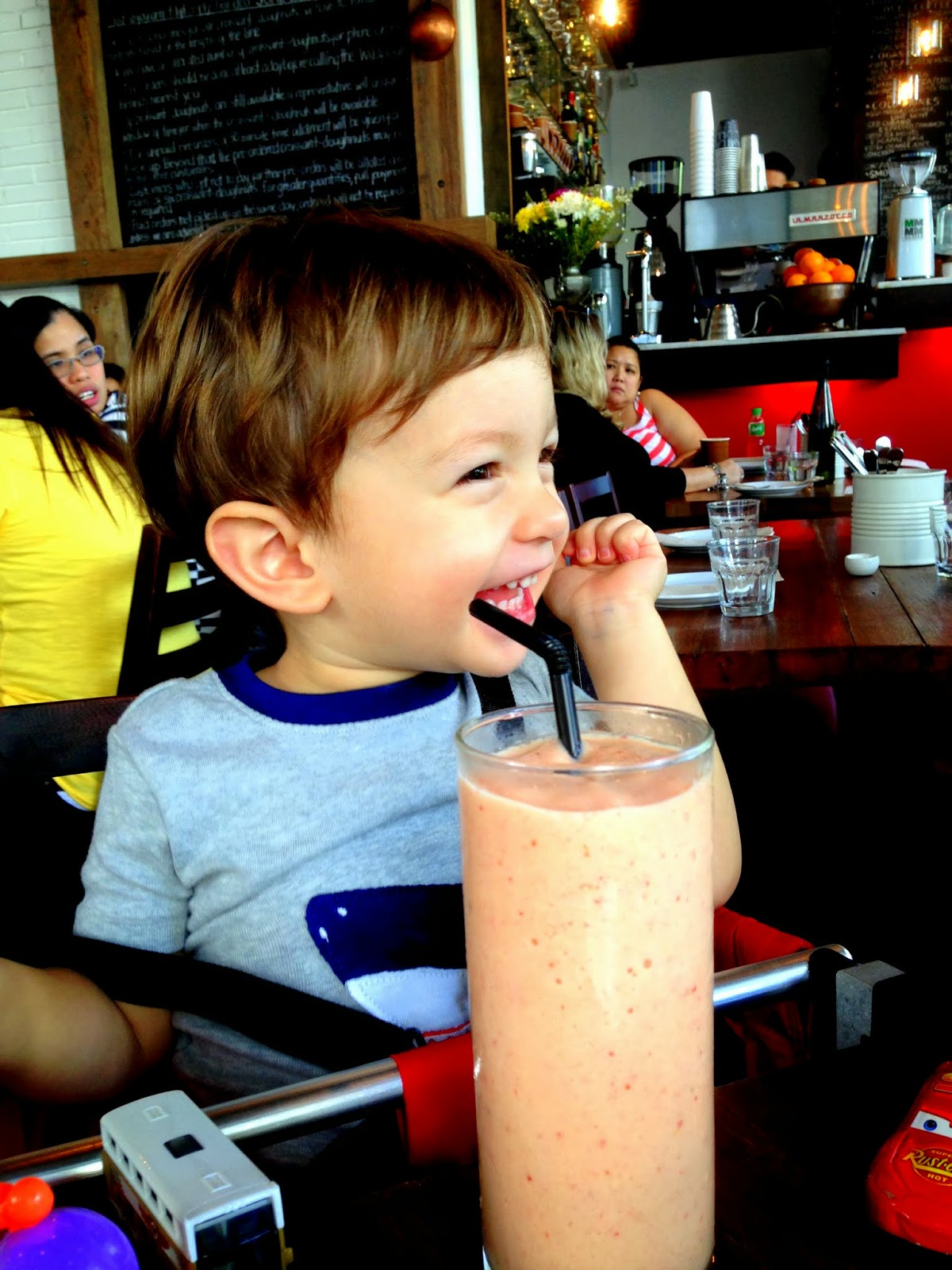After presents we headed off Wildflour for a birthday brunch where Adam really enjoyed his shake.  The rest of us had yummy eggs.