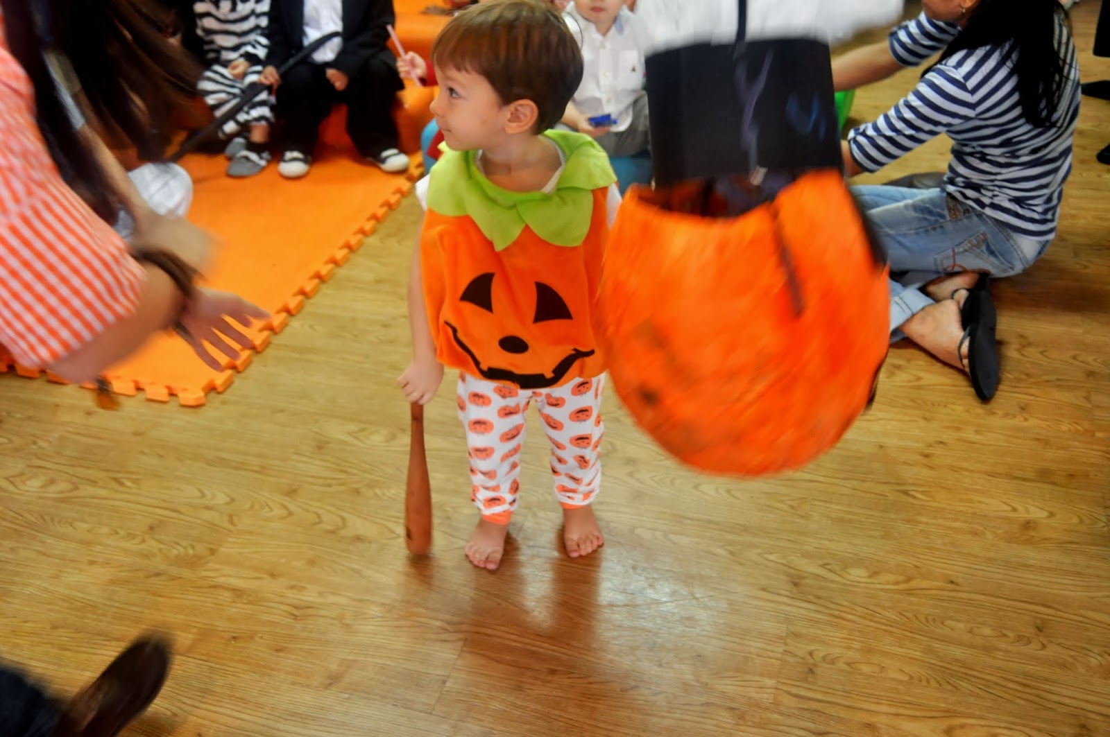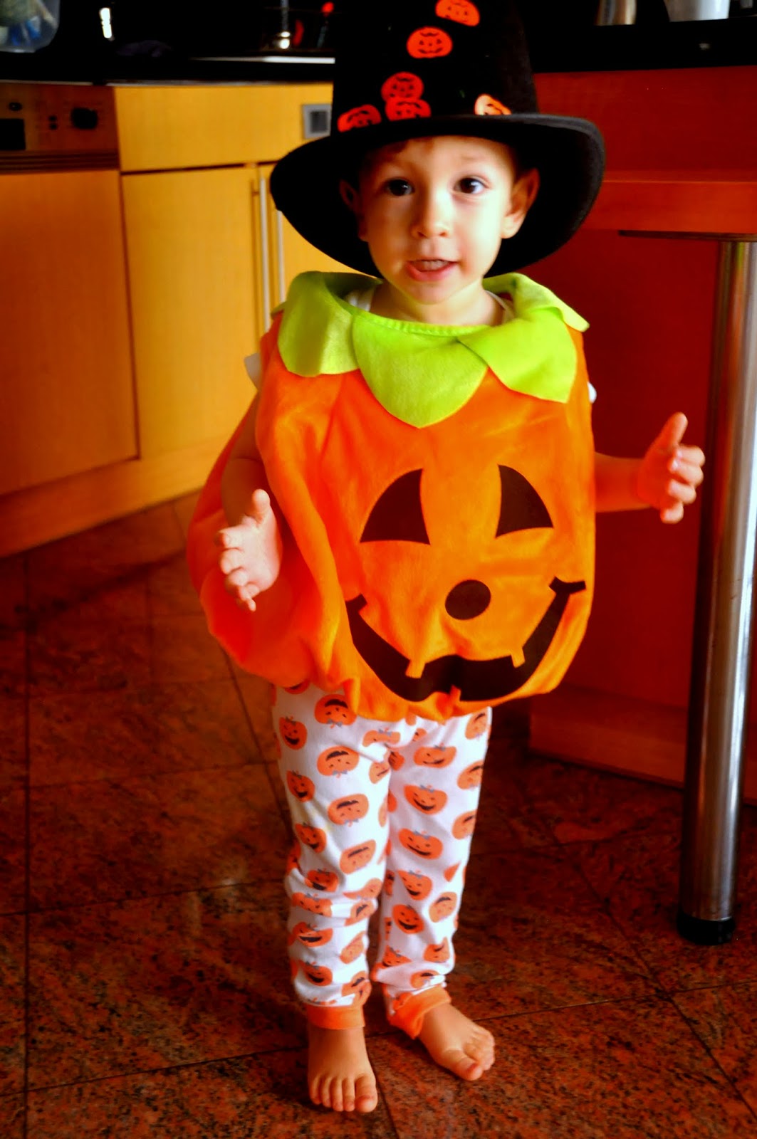 Adam had two Halloween parties to go to and since he’s been obsessed with pumpkins we decided the best costume for him is a pumpkin!