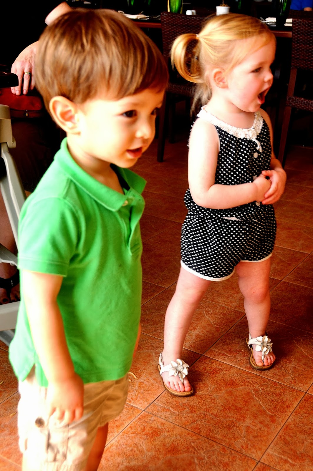 These two didn’t last very long on their chairs, so not that many pictures of eating dinner. So here is what was going on when the rest of us were eating.