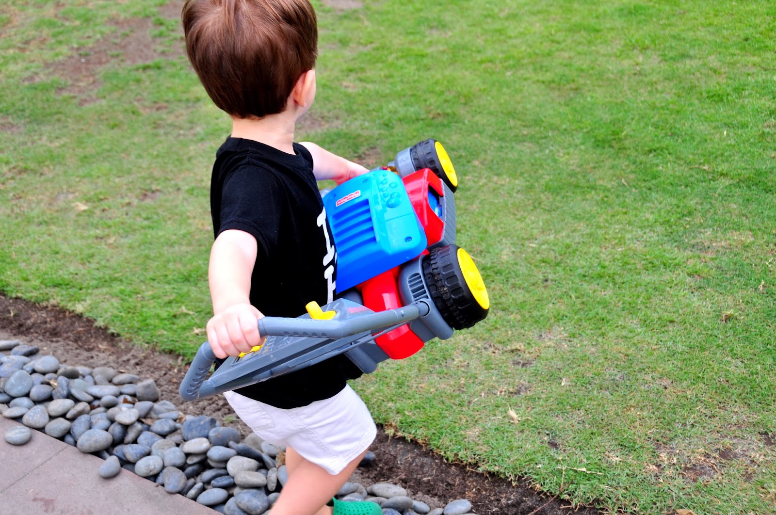 Aunt Das and Uncle Mooj sent Adam the best present last week. They sent Adam a lawnmower. I wasn’t sure Adam would know what a lawnmower even is (living in an apartment certainly has its advantages)