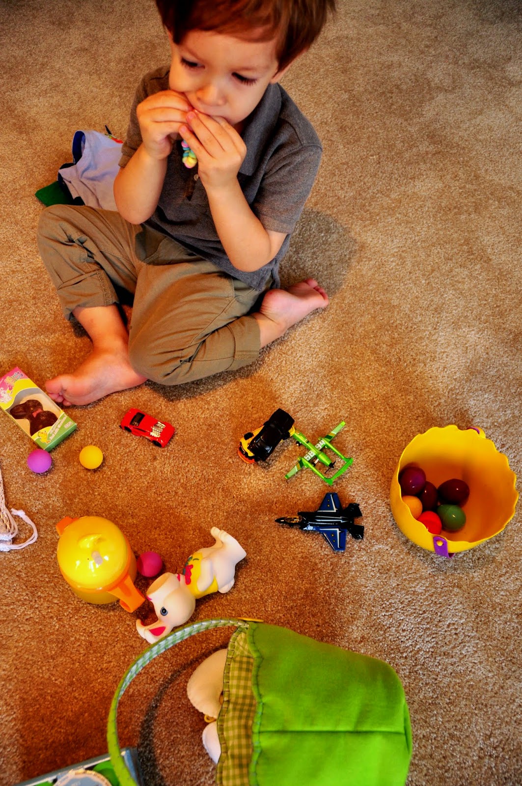 After some snuggling we reminded Adam that the Easter Bunny had come. This was Adam’s third Easter egg hunt but his favorite. He was ready to start hunting those eggs.