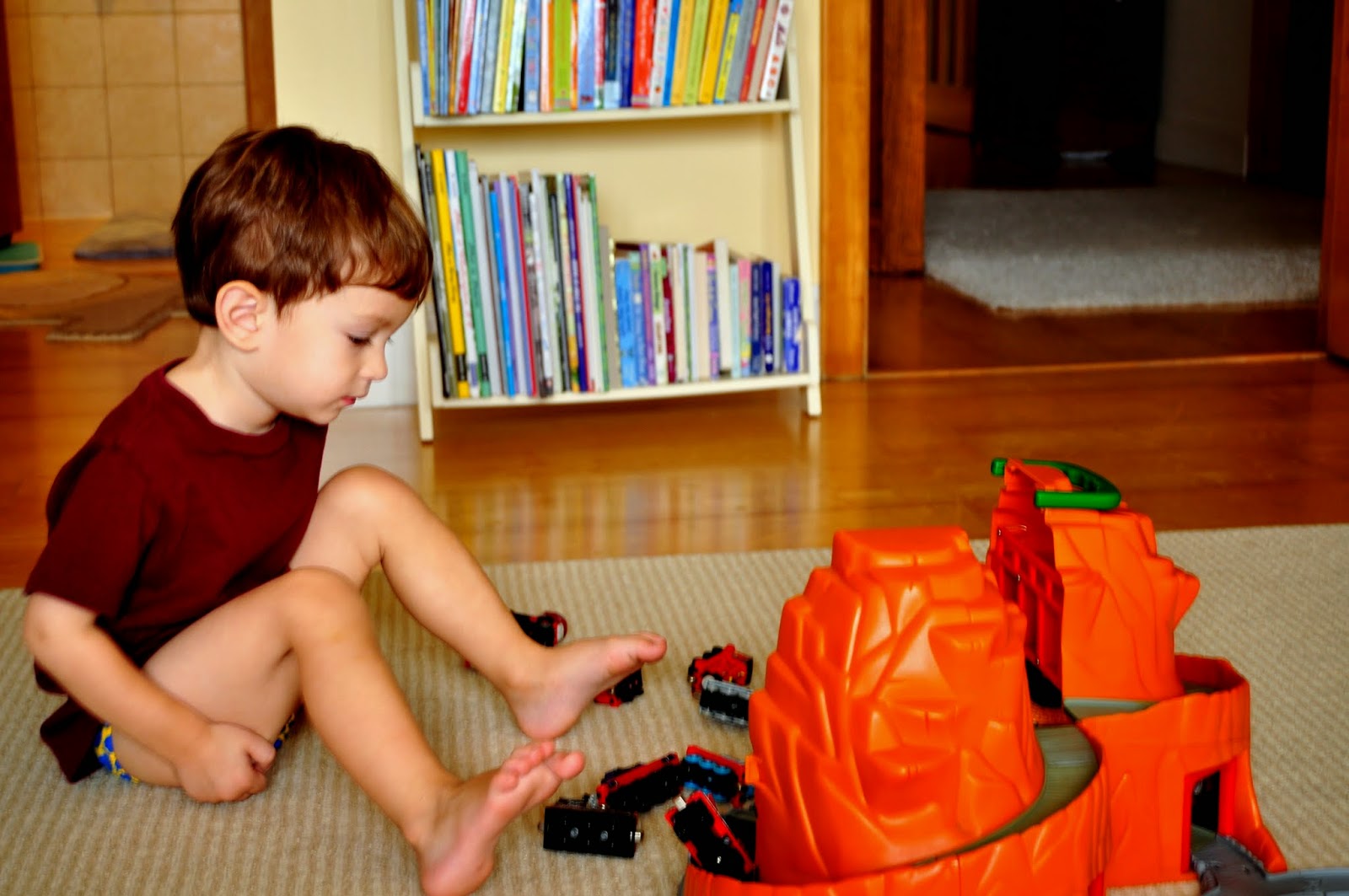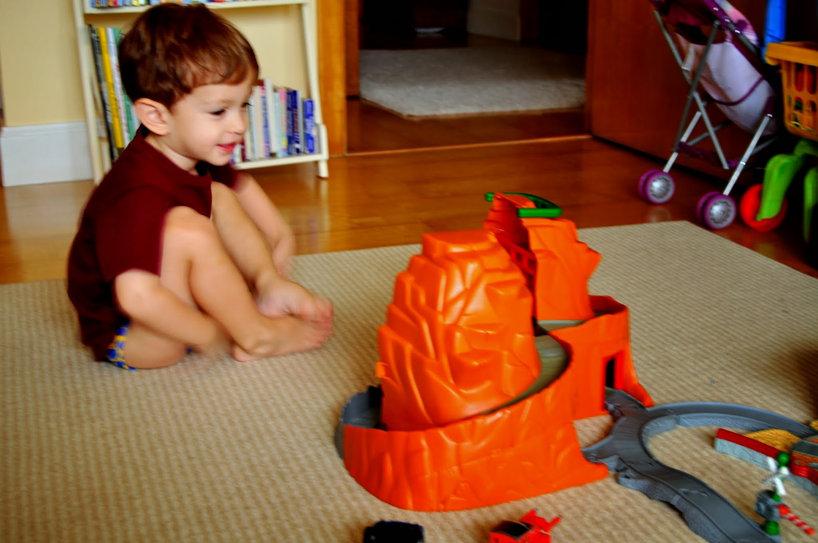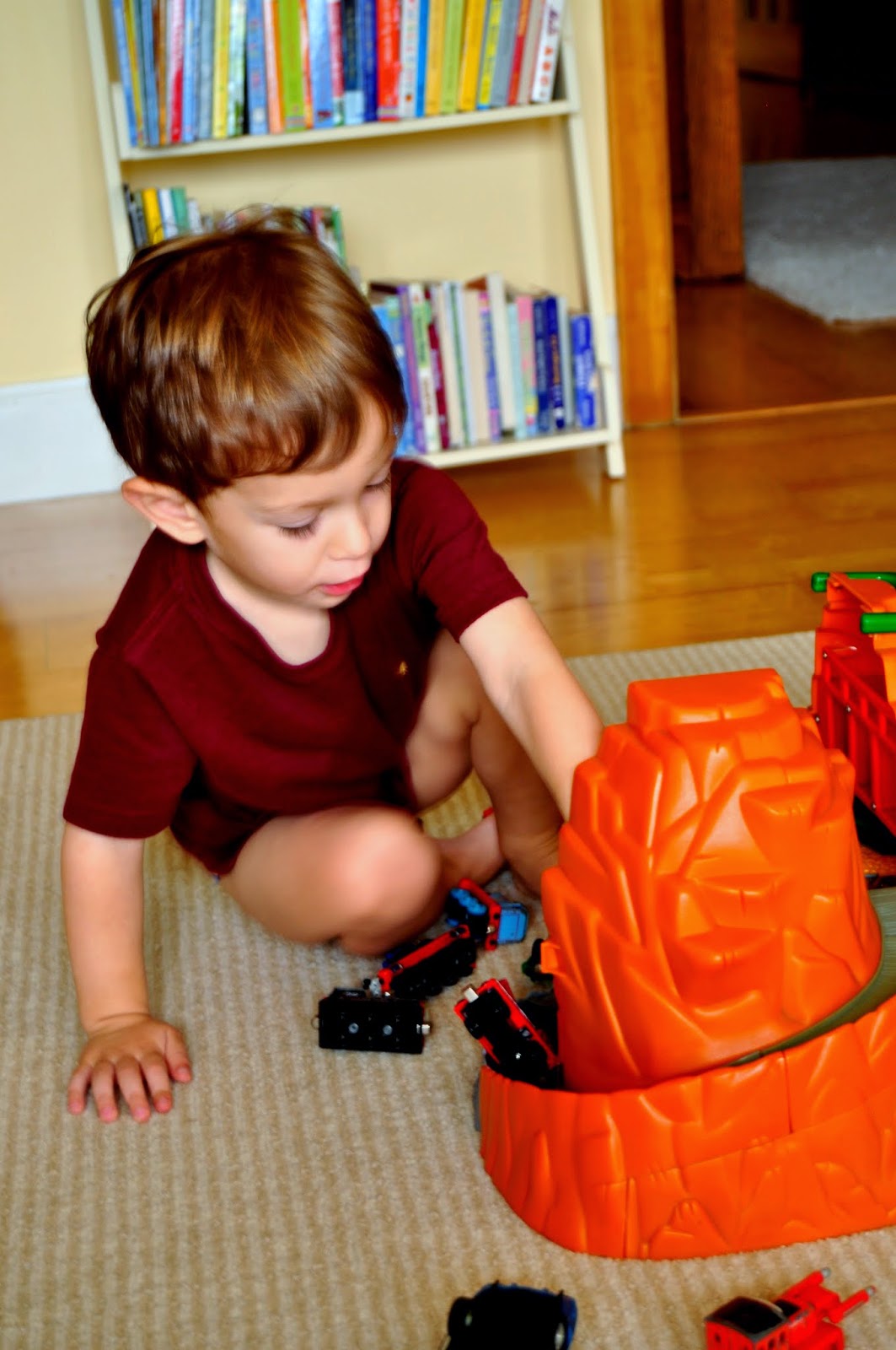 As a special treat for getting things in the potty this week Adam got a new train set which he LOVES! We even went out this morning to the coffee shop and got a haircut and came home for a nap and Adam stayed dry the whole time. It’s still a work in progress but we’re getting there. Added bonus, this train set has been amusing Adam for hours!