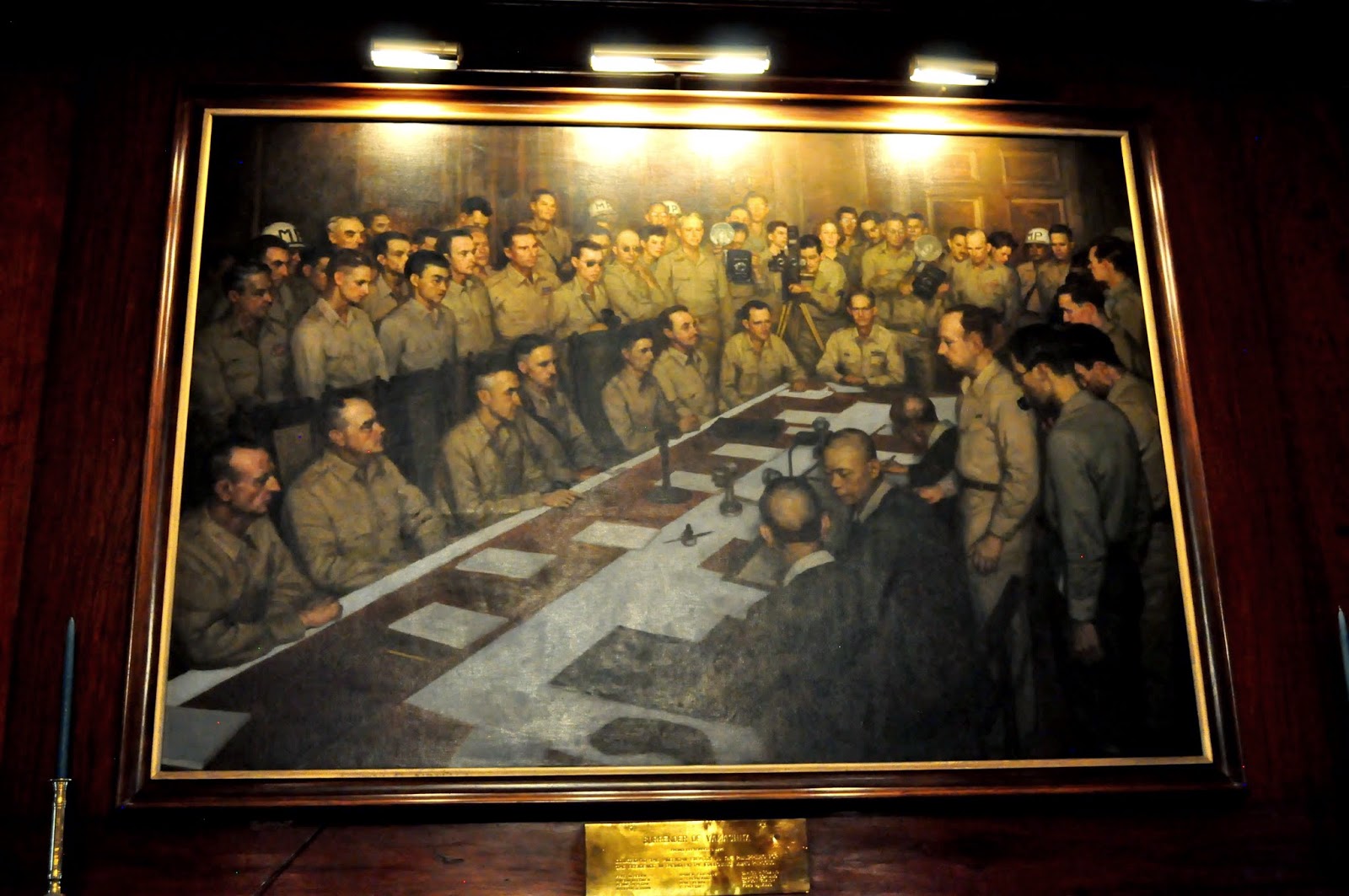 It’s pretty amazing in this very room below where Adam was running around (and I was silently praying he didn’t have any accidents since we’re very very new at this potty training) was where the Japanese unconditionally surrendered to the Americans after World War II. This will for sure interest the two history buff reading (this means you Dad and Henry).