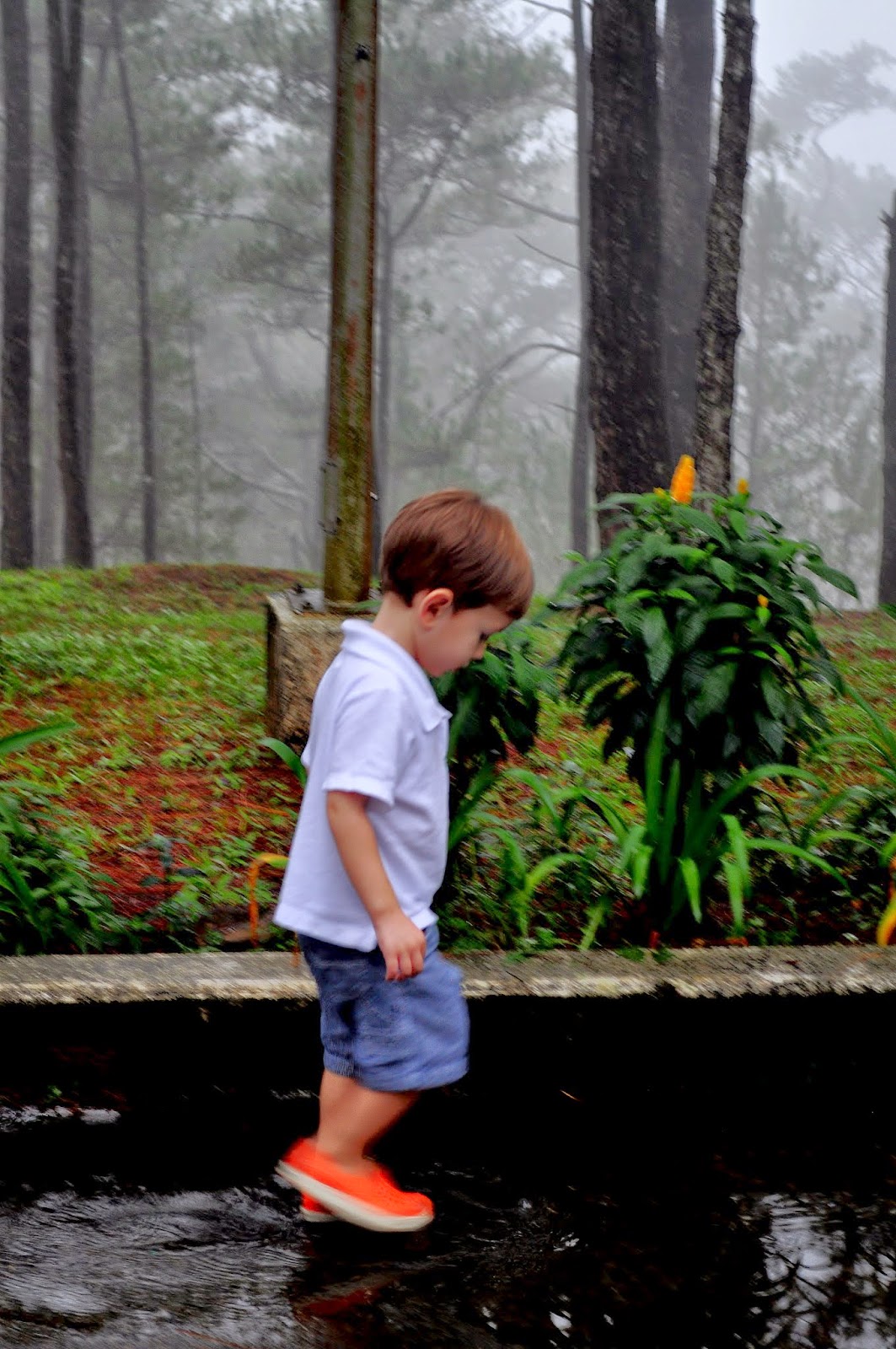 It was foggy and post a torrential downpour which made our walk after fun and full of puddle jumping.