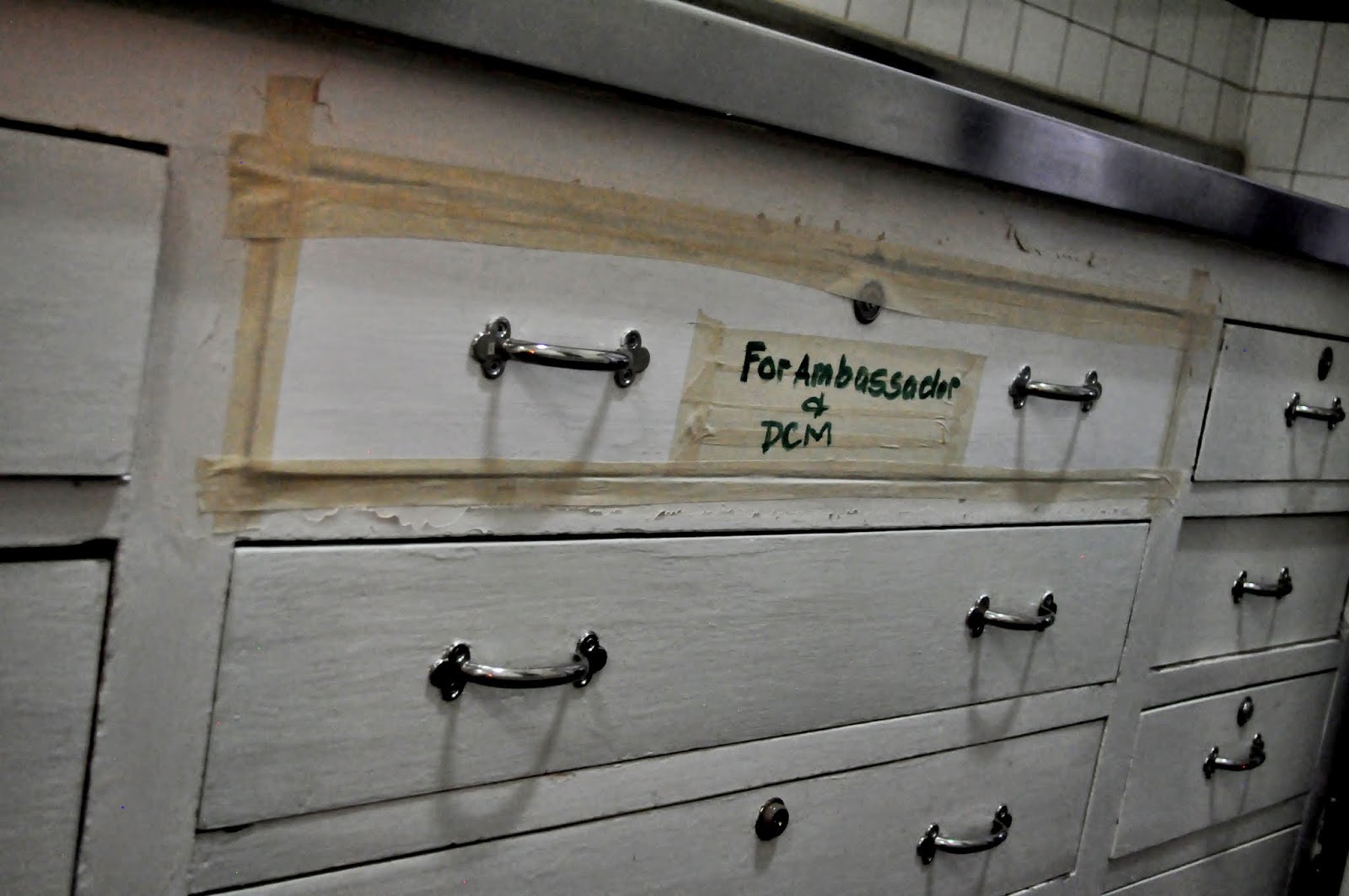 It was fun to see this top secret sealed shut drawer in the kitchen for the Ambassador and DCM. Wonder what top secret information it houses, or do they perhaps not like to share their utensils?