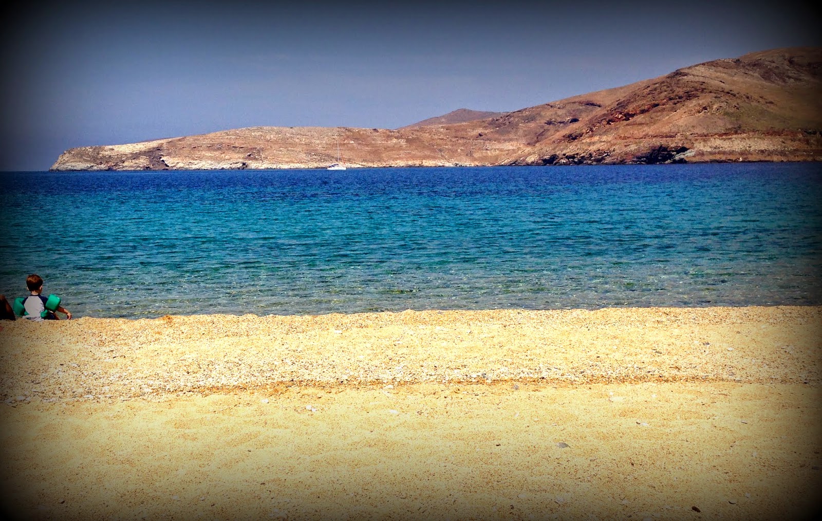 And then, just when we didn’t think it could get any better. We decided to try another beach on Wednesday and we came upon Psili Amos. This means High Sand in Greek and it was beautiful. Not only that, but it was entirely functional. There are tons of trees right by the water for shade. There are two tavernas nearby if we get hungry, thirsty and you can walk out forever and still the water will only be at your knees. This last one was key in getting Adam to finally get in the water. There are also just enough kids to be fun for Adam but not crowded.