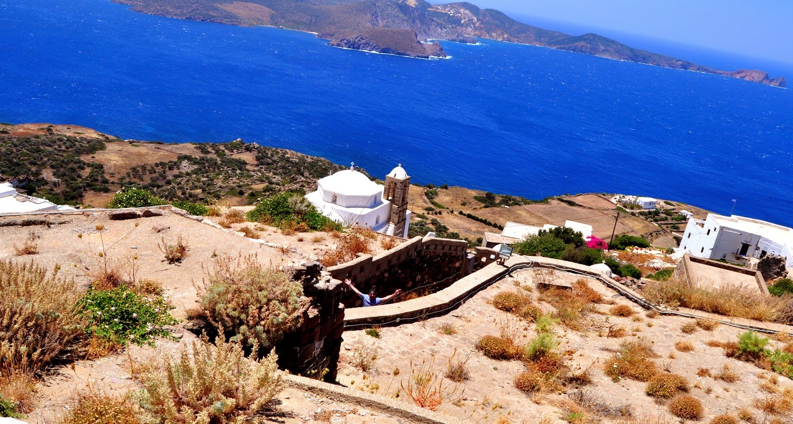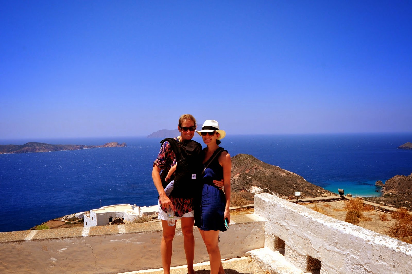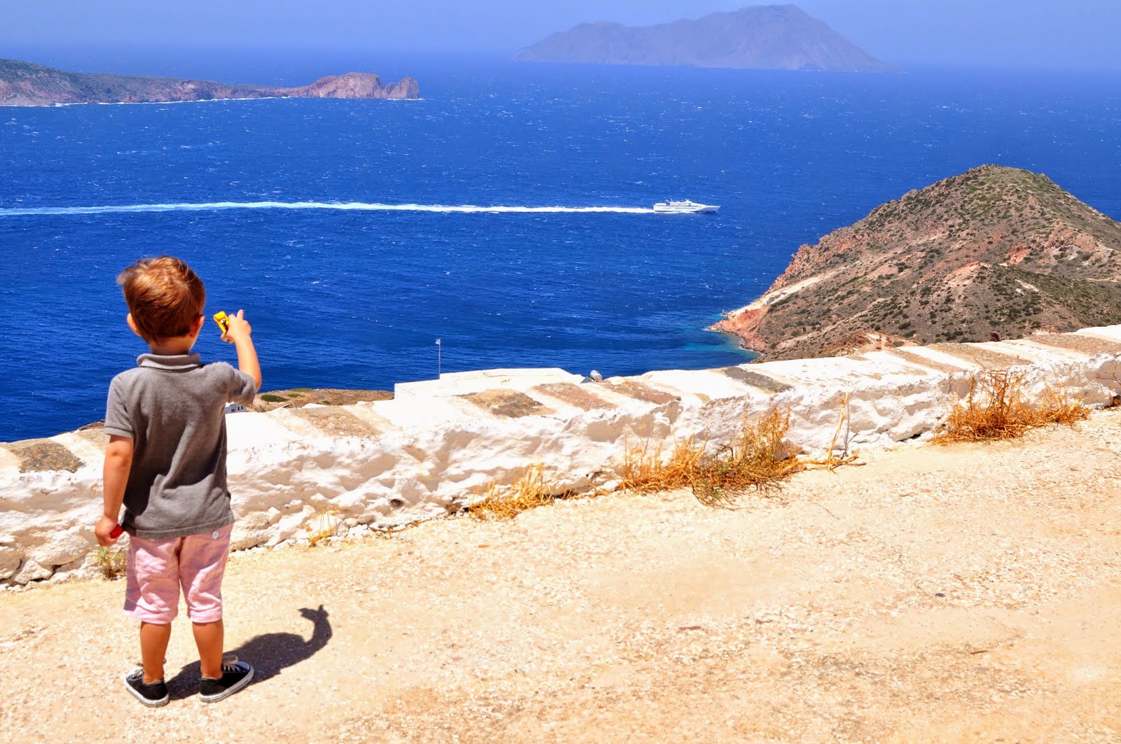Like all the Greek islands we’ve ever been to Milos has a wonderful little town on the top of a mountain.  We packed up the boys and headed up there.  And of course Adam, who is boycotting naps fell asleep on the way up the mountain of course.  Randy hung out in the car with him (what a great daddy) and Daphne, MJ, Malcolm and I walked around the town.  The town did not disappoint.  It was full of little boutiques and cute little windy cobblestone roads.  But the best part of this town was the Castro, which is on the highest peak in the town.  After walking up and up and up you get to the top and there is a little church and the most amazing views.