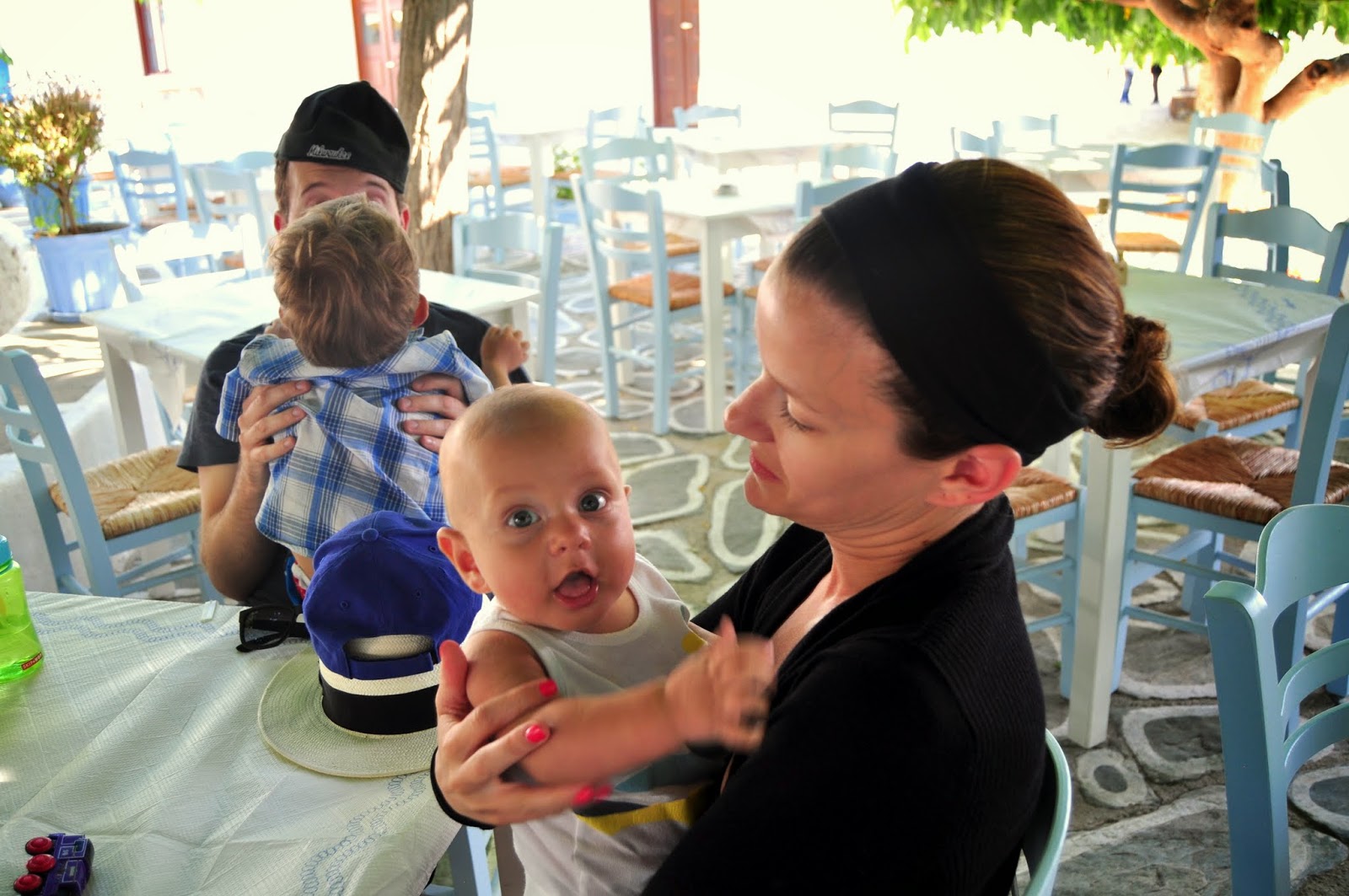 We picked another square and another restaurant for dinner. I love long yummy dinners in Greece and especially love them with Daphne and MJ. They last so long and always end with the boys rotating around everyone’s naps and lasting for a long time after we had finished eating. I love how in Greece there’s no rush to finish eating, you just want to linger and linger. Even Adam seemed to get this and loved the after dinner lingering. In fact, he probably loved it the most.