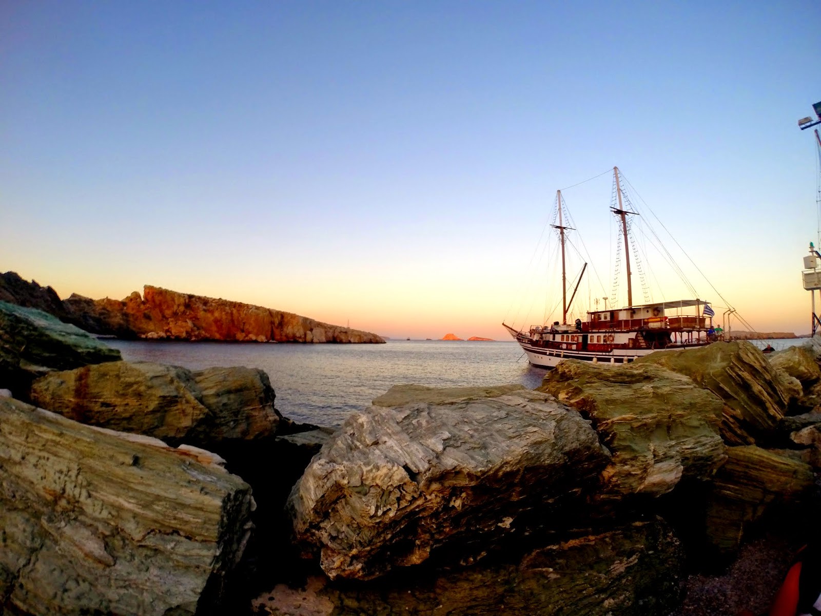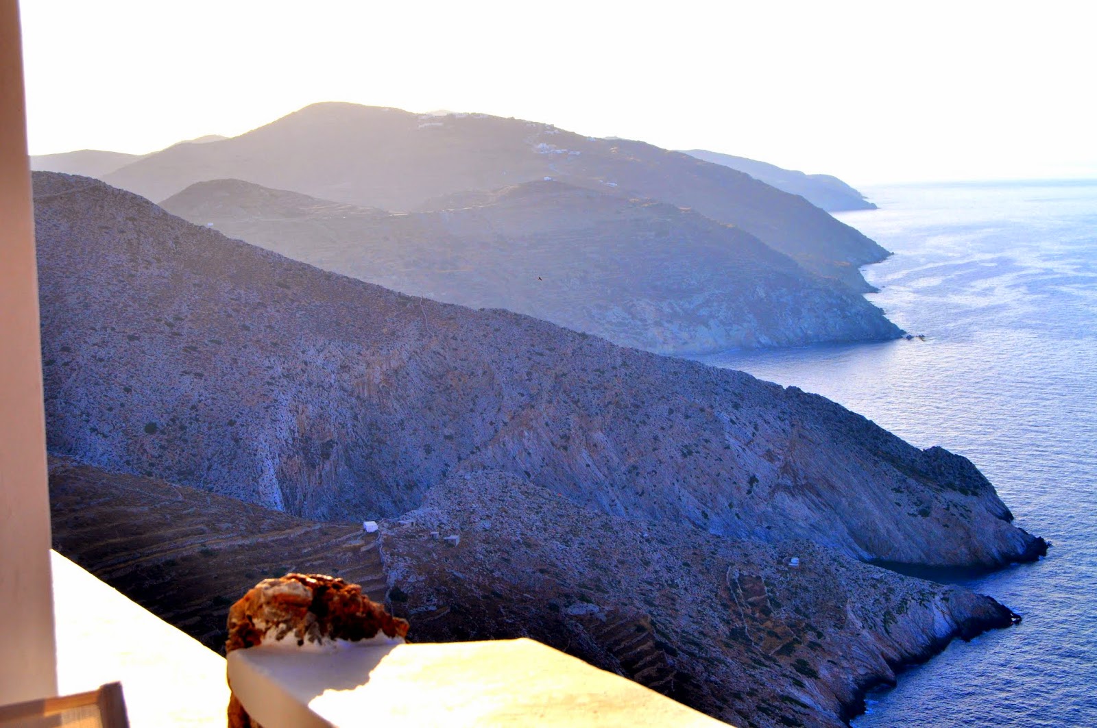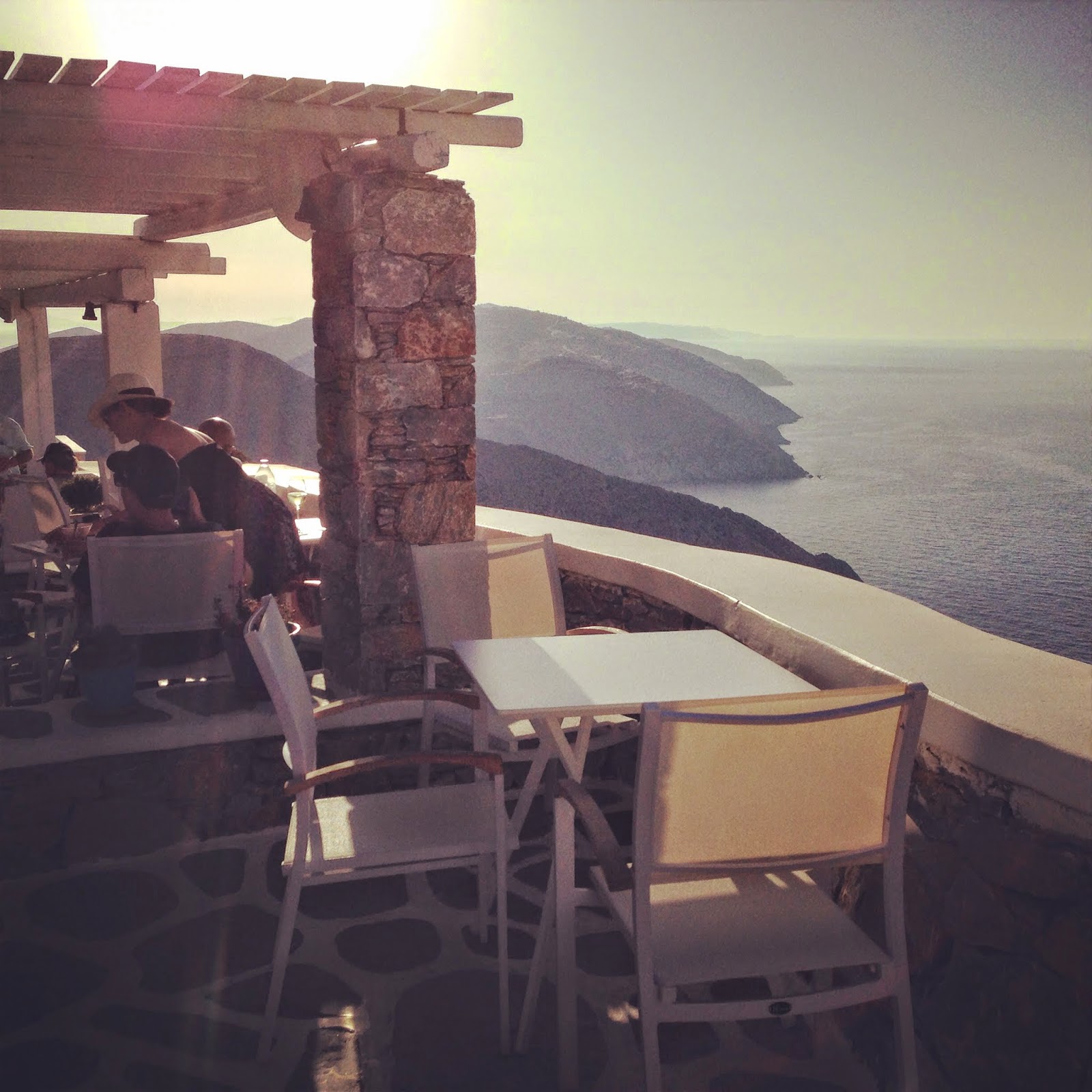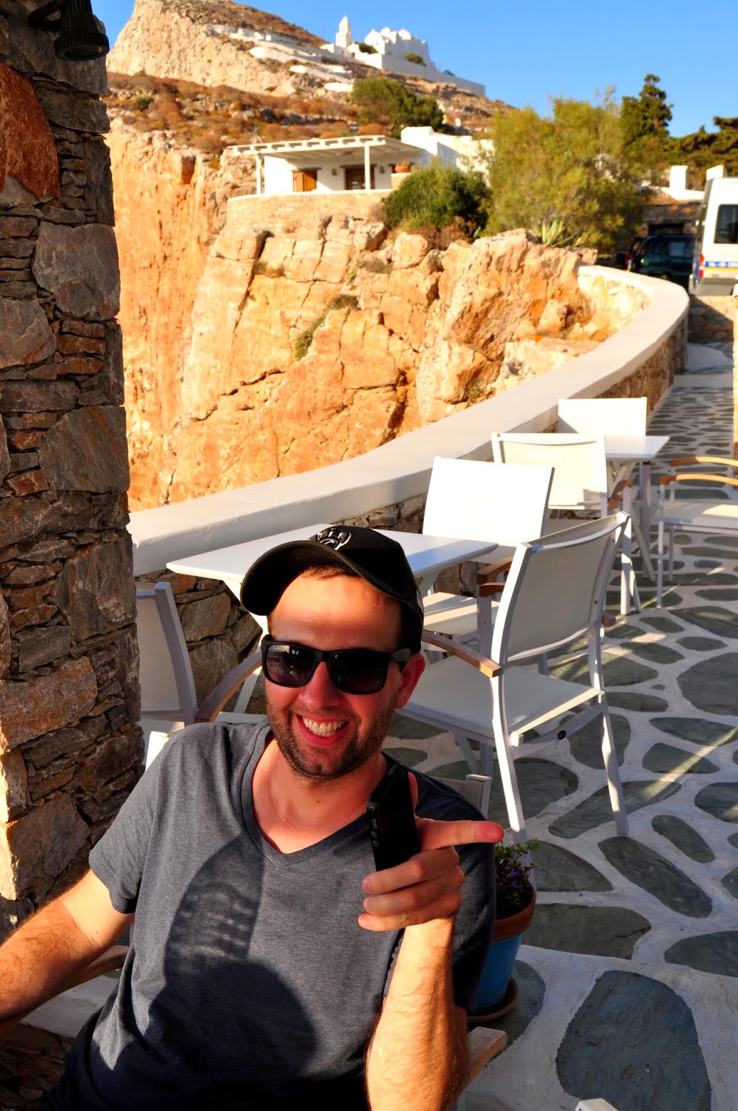 Then the real star of the day. We had some time before our ferry back to Milos, so we decided to have a drink at the Anemomilos Hotel. Our friends Erika and Henry stayed here when they visited Folegandros after our wedding and if we had known how beautiful it was we would have spent the whole day there. We ordered a couple of desserts and drinks and watched the sunset.