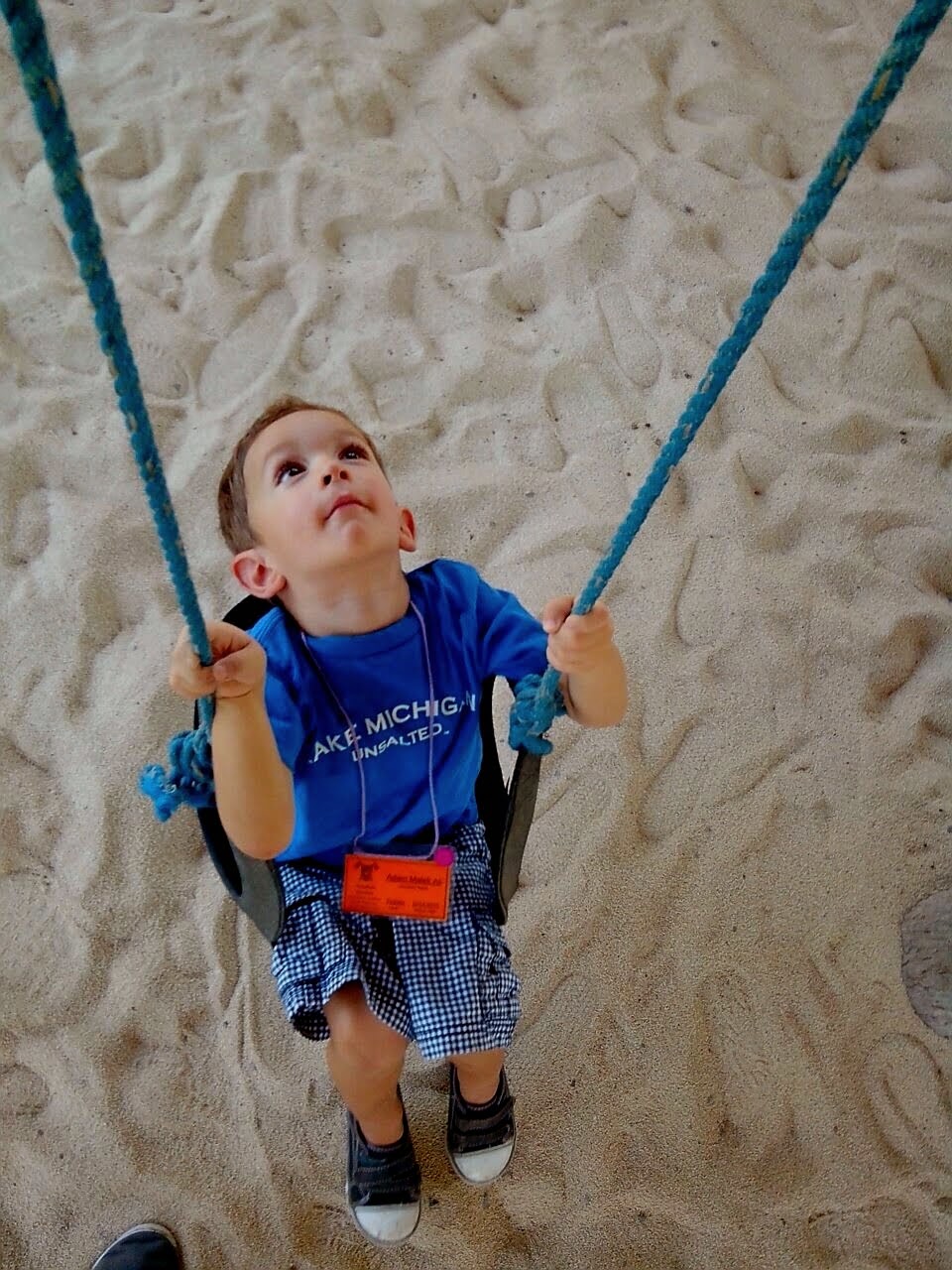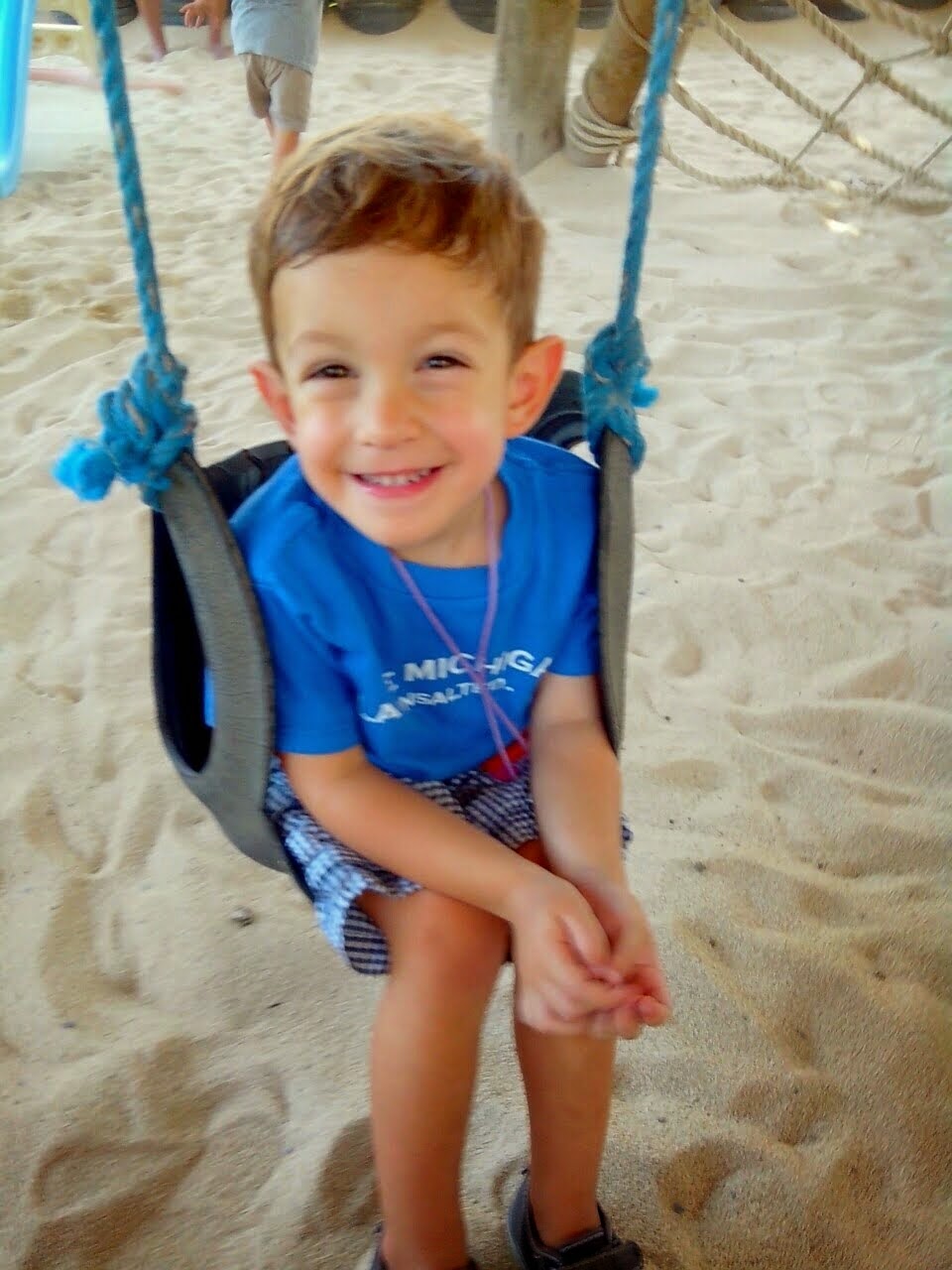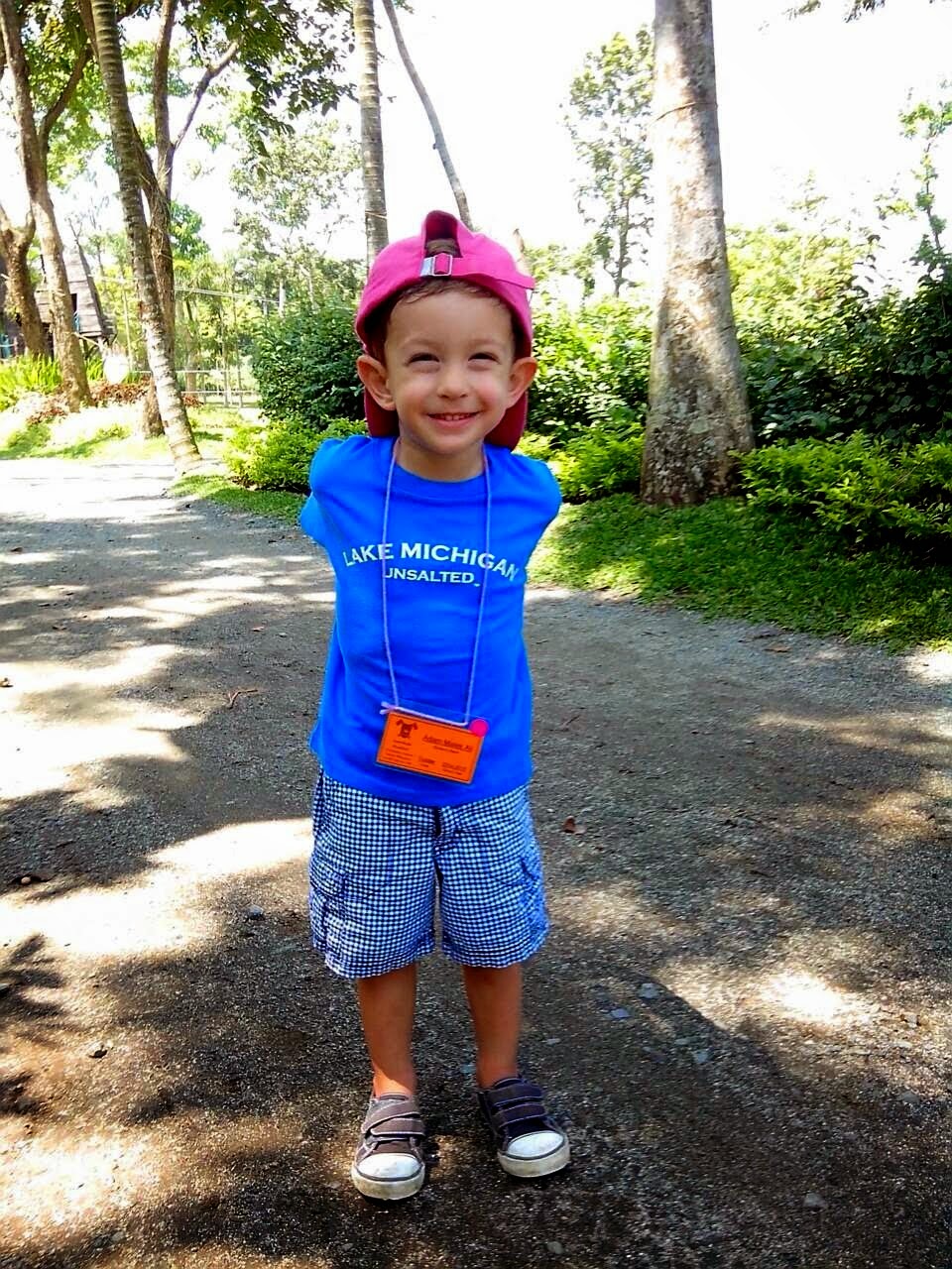 We forgot to pack Adam’s hat so his wonderful nanny (who went along since mommy and daddy were at work) lent him her hat.