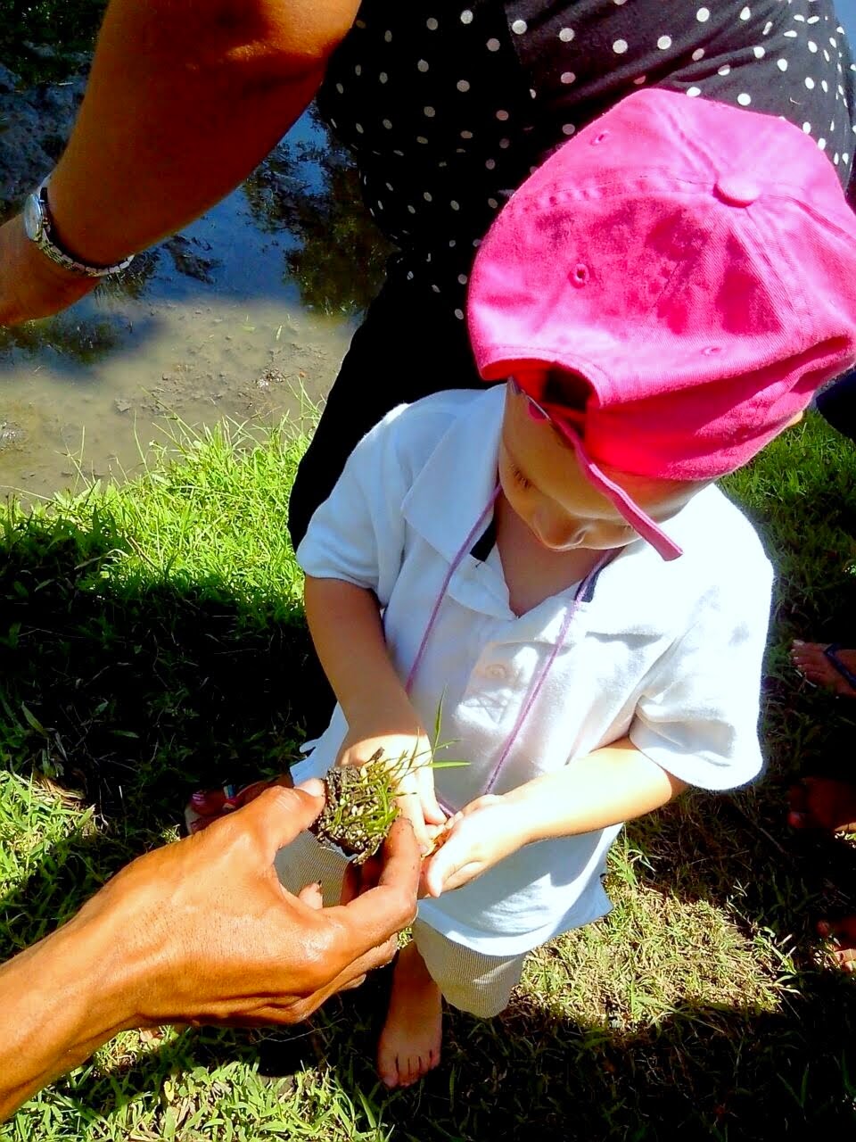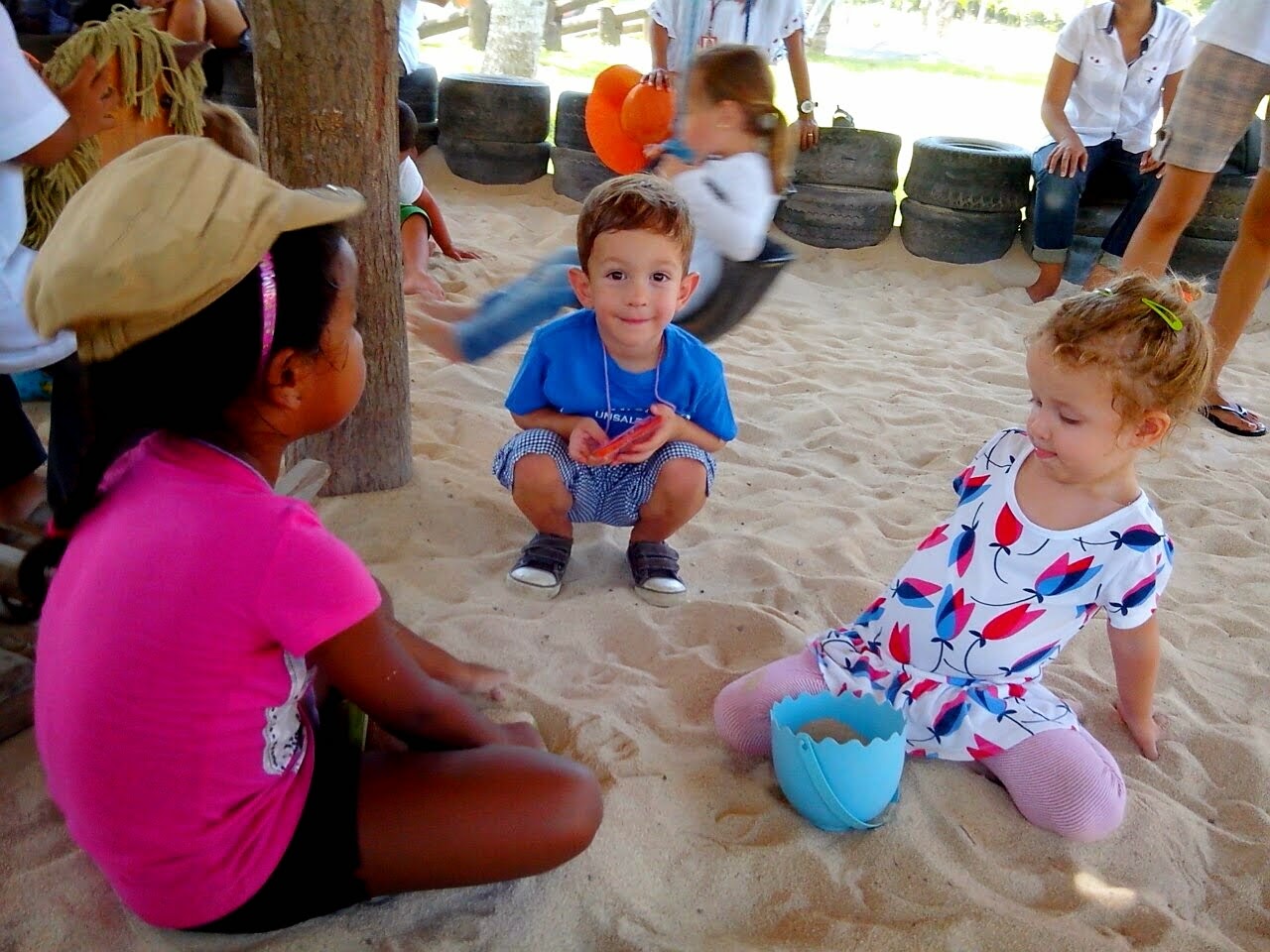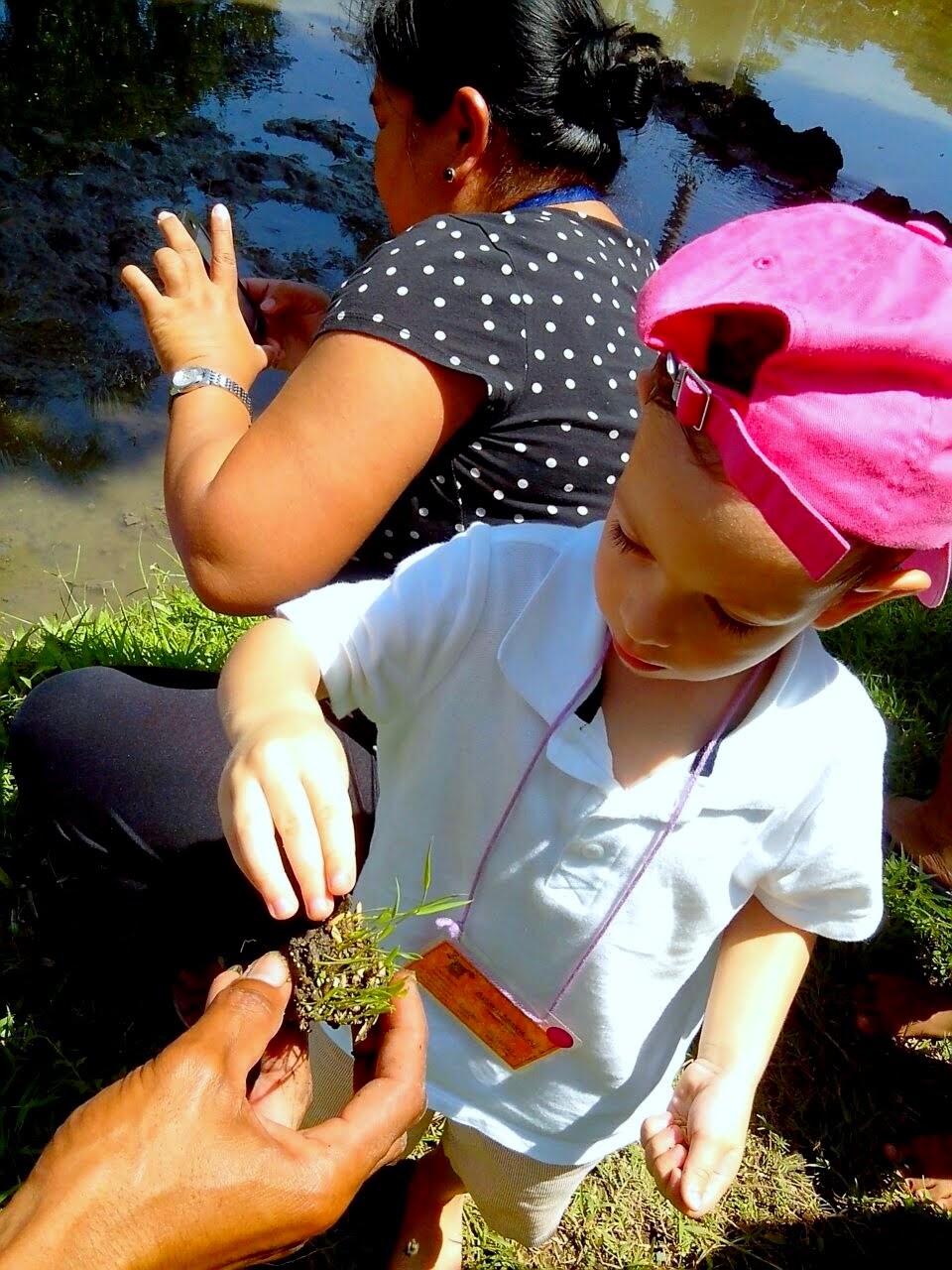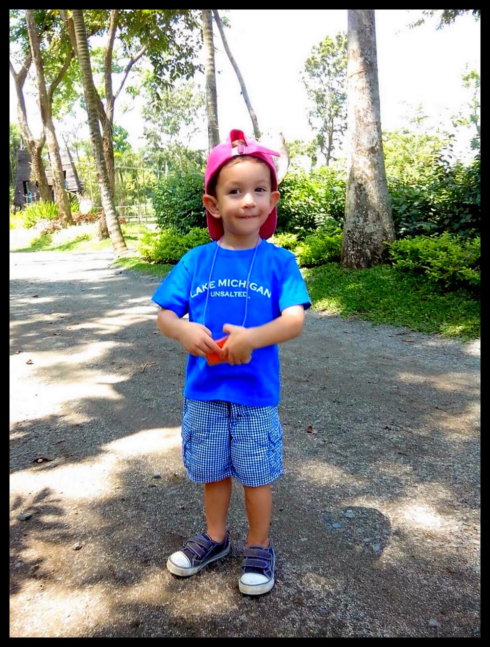 We forgot to pack Adam’s hat so his wonderful nanny (who went along since mommy and daddy were at work) lent him her hat.