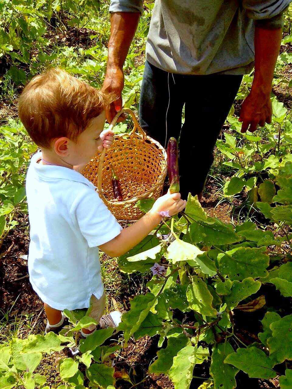 The school arranged for Adam to plant a little tree and some rice and pick some eggplants and radishes. He didn’t get to do this last time so it was such a nice experience. Adam came home with his eggplants and radishes and wanted to try them right away.