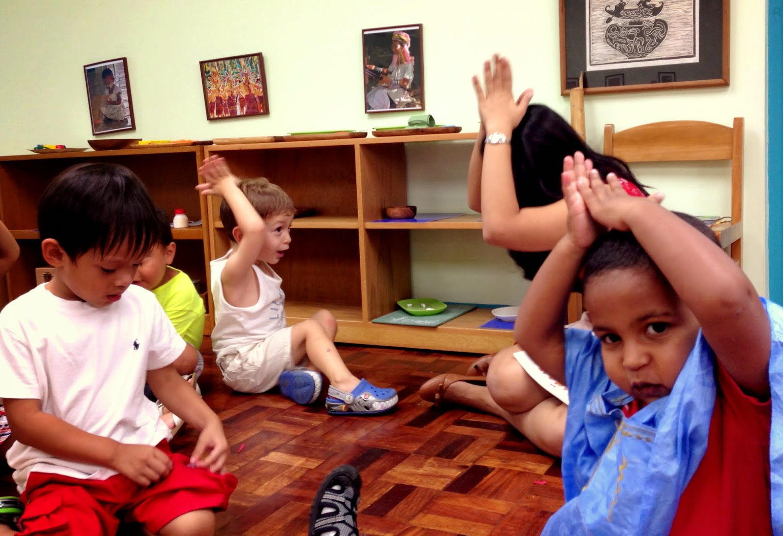 Adam’s class put on a super cute performance and sang a song about the continents. His school does a pretty good job teaching through song. He might not know it but he already knows the days of the week and the continents. Here is what it looks like when you try to take a picture of 20 2-4 year olds.