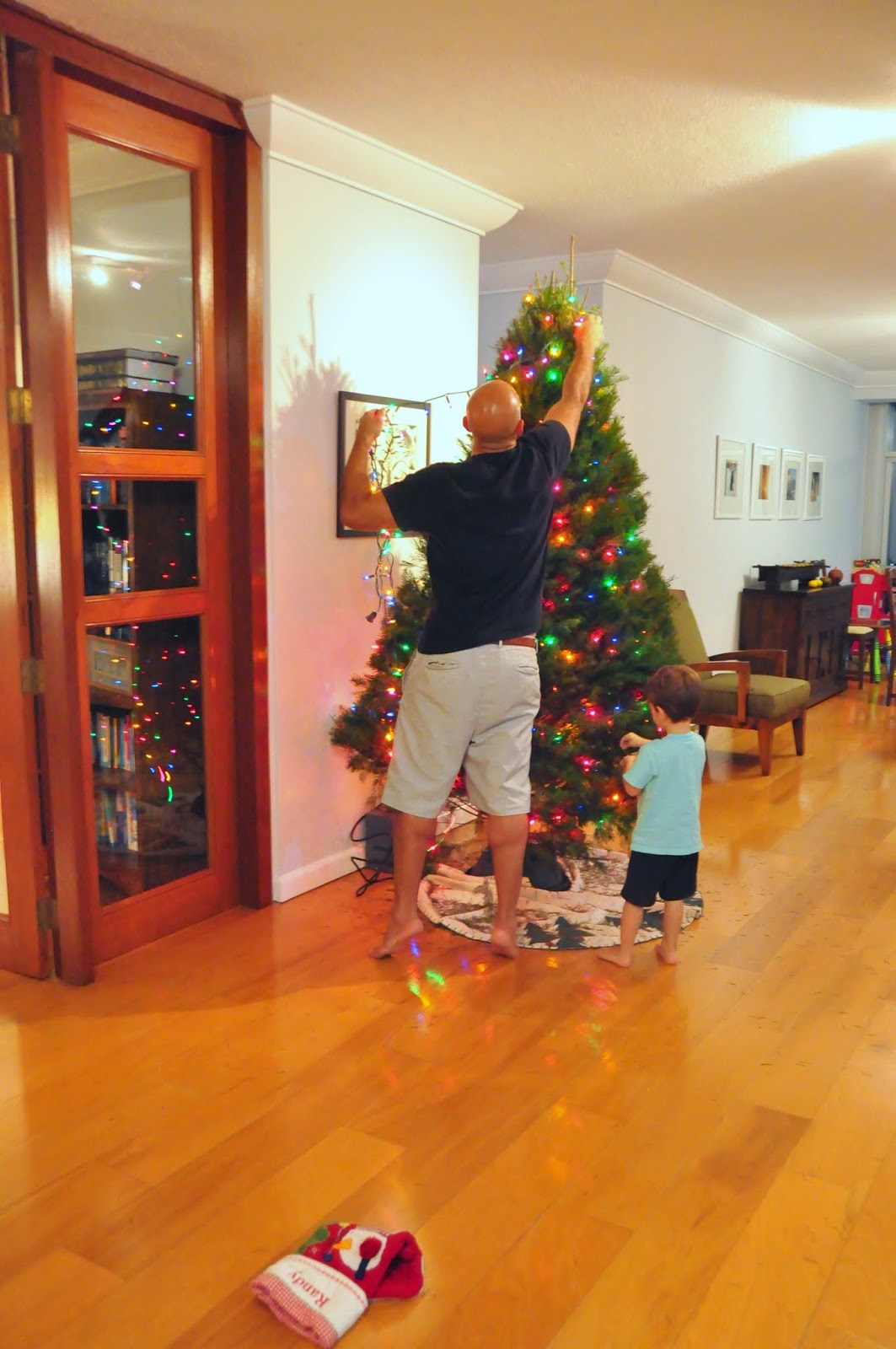 Tied in excitement was this guy. Adam couldn’t wait to put the lights and the ‘otaments’ on the tree!