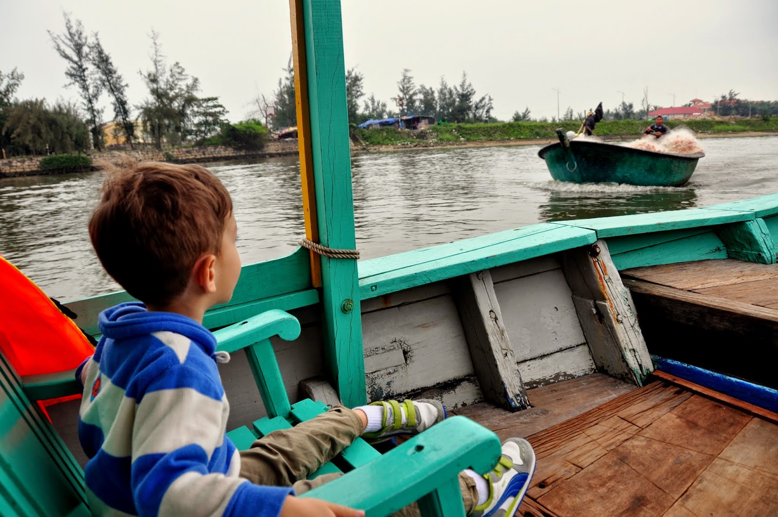 All in all, we really liked Hoi An. Even with the rain and Malcolm’s never ending cold it was a really nice place to spend Christmas. For our last night there we went to a really nice restaurant that was set off from the main street, called Hidden Valley. The food was great and there was a great guitarist playing. Randy and I even managed to finish our wine, a miracle when traveling with two little ones!