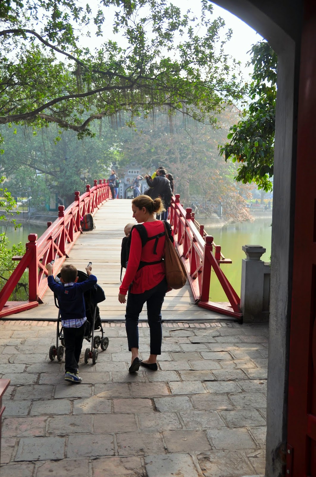 Adam helped us decide where to go. He LOVED looking at the map. In fact we had plans to for the day but Adam insisted that we go towards a red bridge he saw. He was being a bit toddlery and determined. We decided to go with it (pick your battles people) and it ended up being a red bridge full of animal carvings leading over to a wonderful temple in the middle of the lake. It completely threw us off schedule but ended up being completely worthwhile. I think what I learned most this trip is that as Adam and Malcolm get older their voices in our travels really need to be listened to. Sometimes they don’t want to partake in a walking tour of shops in Hanoi. Sometimes they want to cross a bright red bridge and see what’s on the other side. Rightly so Adam. And don’t worry people, I got my shopping in!
