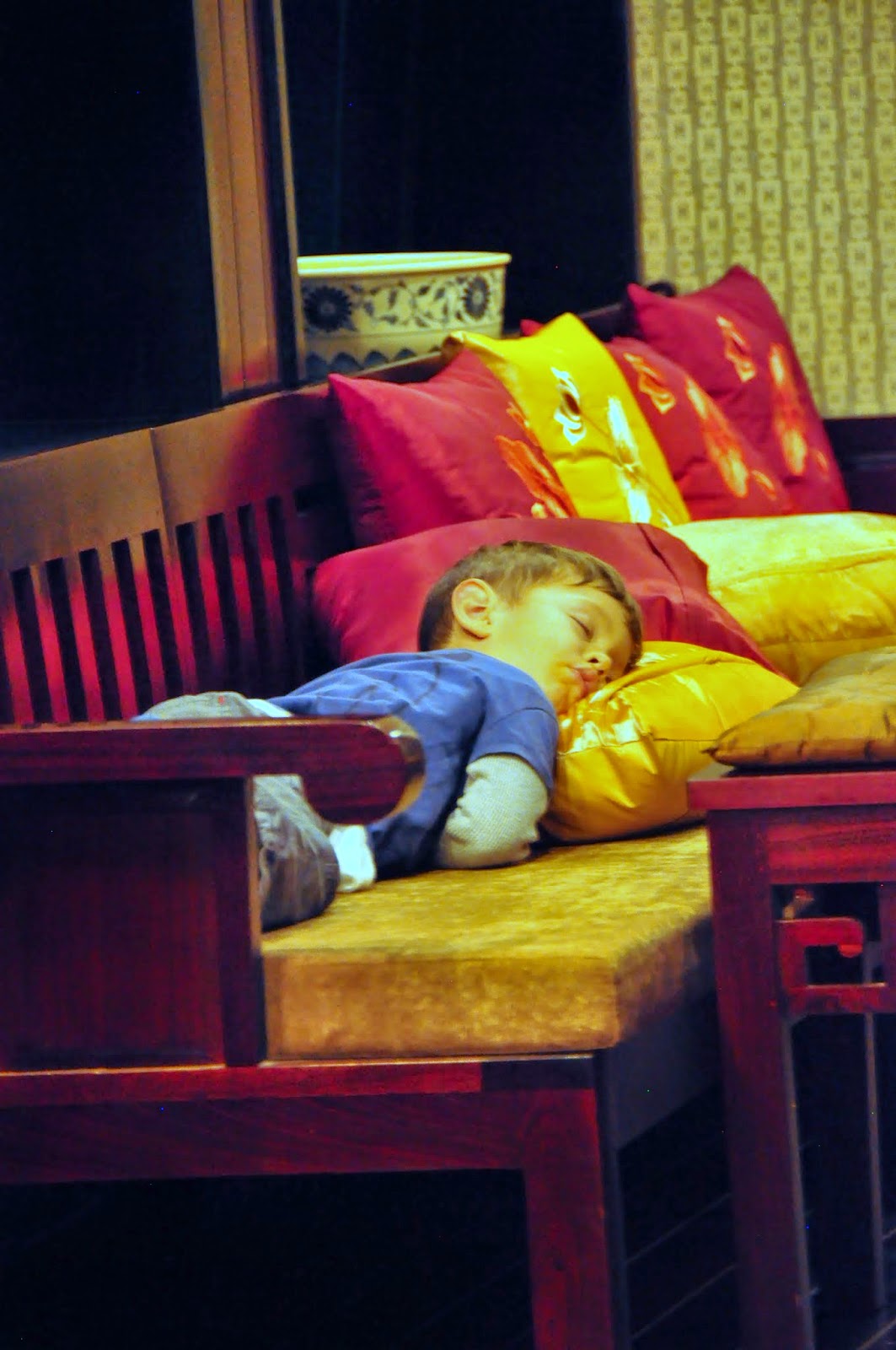 Here is Adam’s ‘I’m angry face’ and this is when chopsticks are used for evil. I think we were past our nap time and Adam wanted to spend all of lunch playing with his new friends so he scowled for a bit. It’s pretty hard sometimes not to laugh at his ‘I’m Angry’ face.