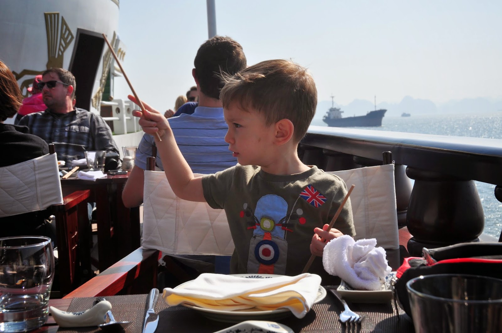 We took a little boat to our boat, called the Dragon Boat. For Adam, who is obsessed with Dragons this was the perfect boat.