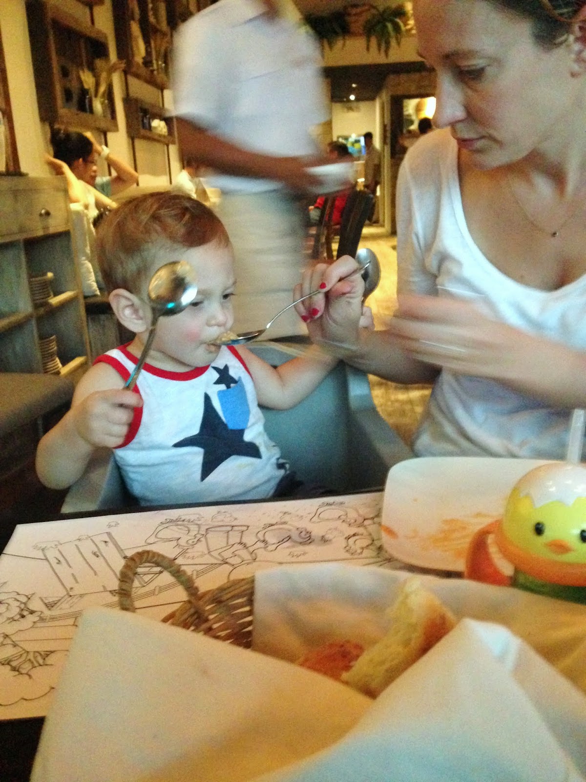 We celebrated Mothers Day and took Mommy out to dinner. We behaved perfectly and had a great time! I even took this picture for mommy.