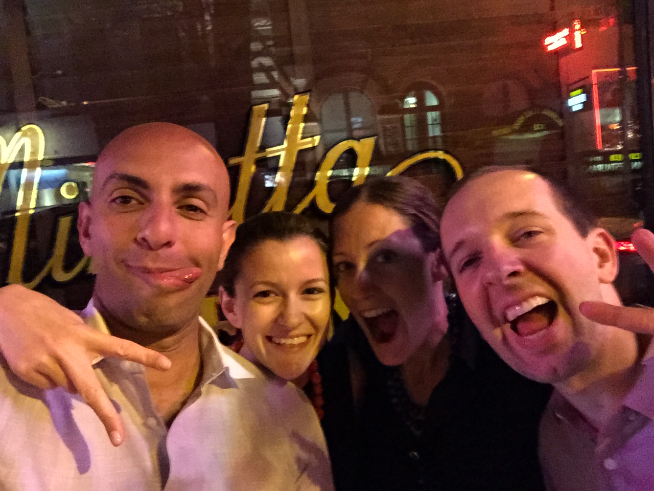 To add some excitement to our amazing meal, while were were eating James Spader walked in and sat down right behind us! Then not 5 minutes later Jim Carrey and to quote Daphne ‘that guy from the Americans’ (no clue who that is) came and sat down right behind us! 10 minutes later Jim Belushi walked right by our table and stopped right in front of us to look at James Spader, Jim Carrey and that guy! He even looked down and talked to to us for, oh, about 5 seconds. A pretty exciting night, we are basically famous now! Daphne and I played it cool, but Randy and Mj insisted we take a photo 🙂 Ok, maybe Daf and I insisted. Here you go people, you’re welcome. One for your walls.