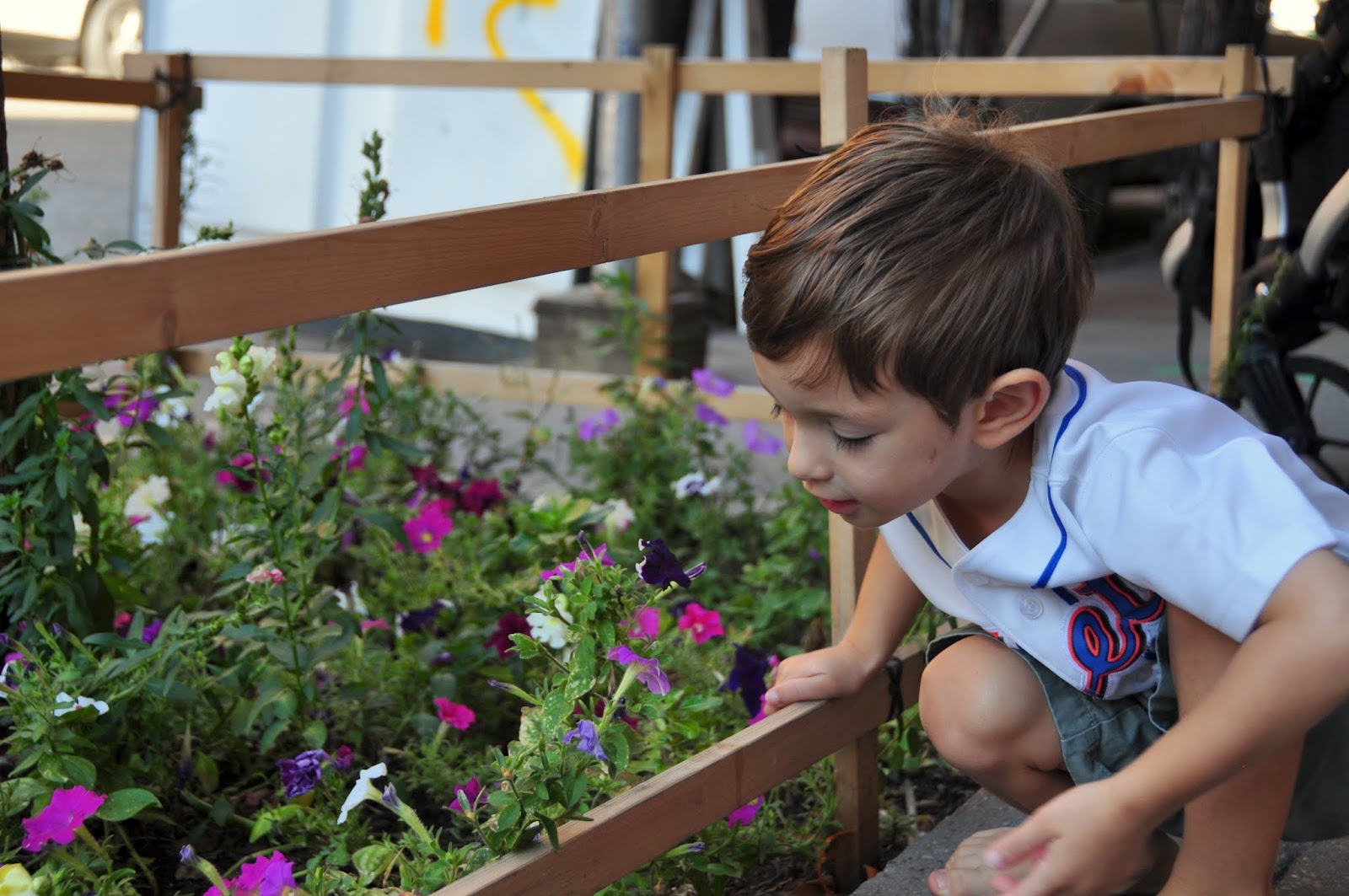 We set out one morning and before we knew it we were at the Highline. It was a long walk but we of course stopped along the way to smell the flowers. Oh we also forgot Adam’s shoes. Now that he climbs into the stroller by himself we often are out the door before we realize he has no shoes on. Luckily he didn’t mind being barefoot.