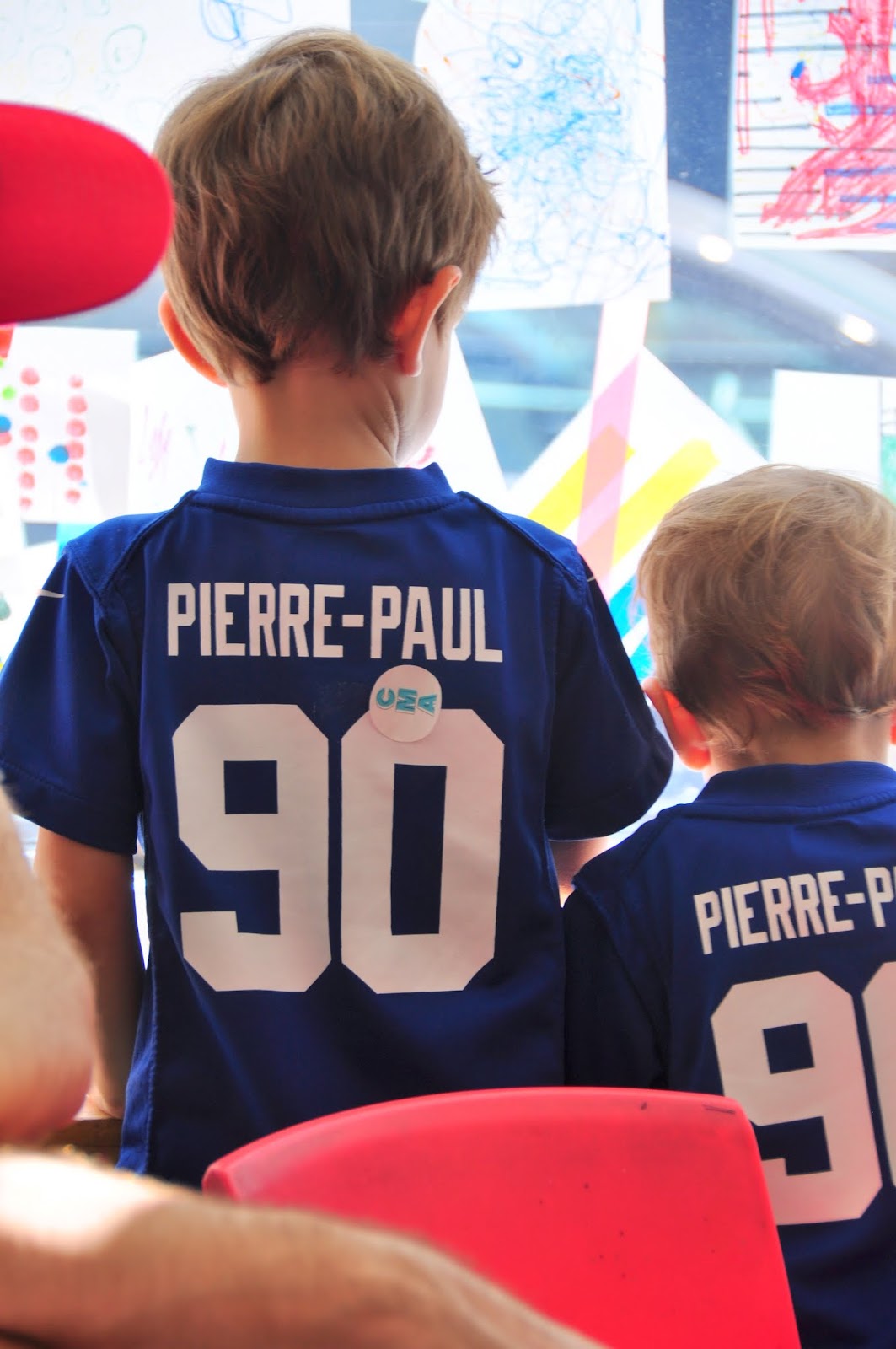 Then it was time for some more arts and crafts. We moved to the the big kids room and Aunt Das helped Adam make a fancy hat!