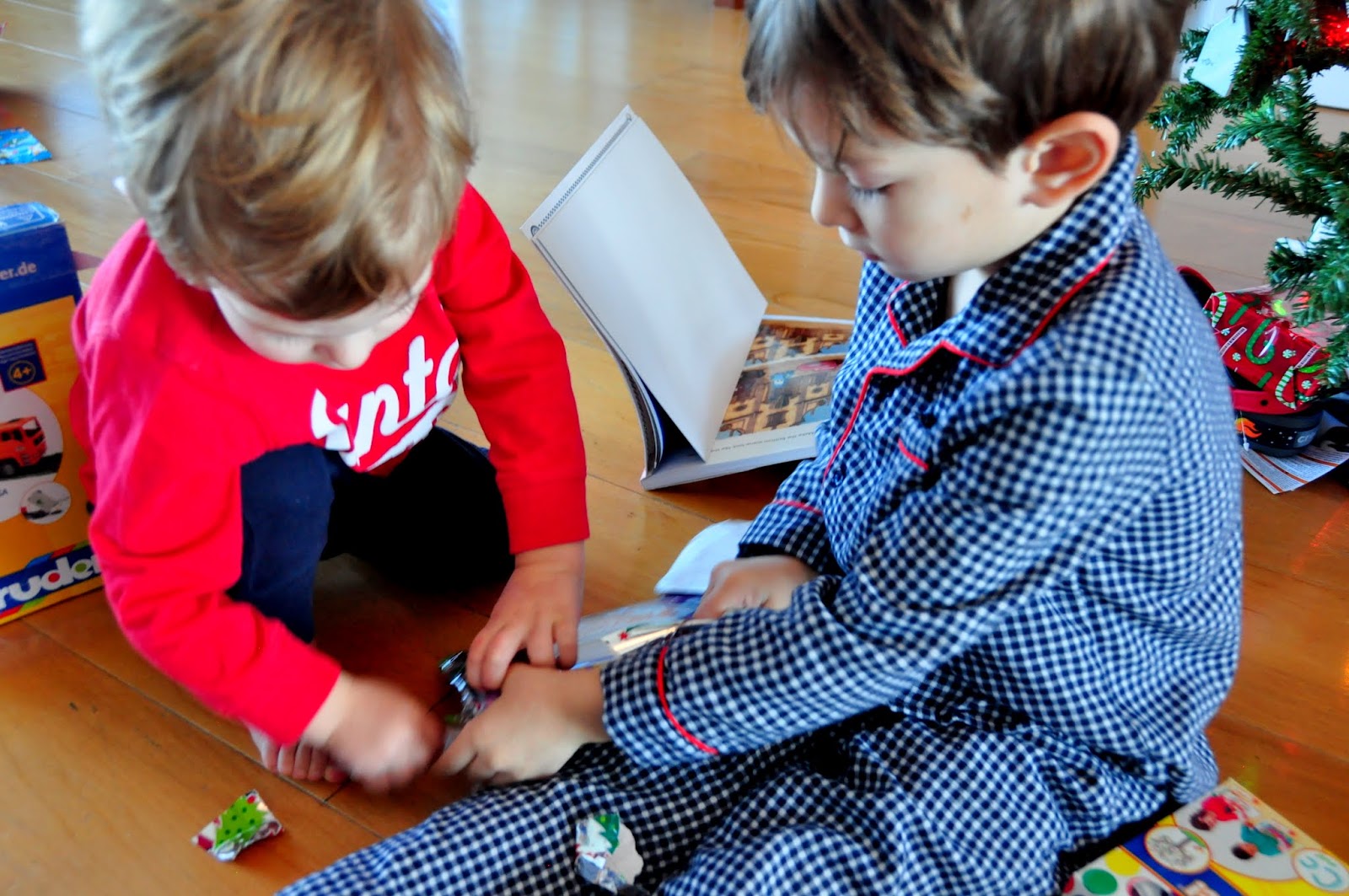The boys wasted no time opening up their presents!