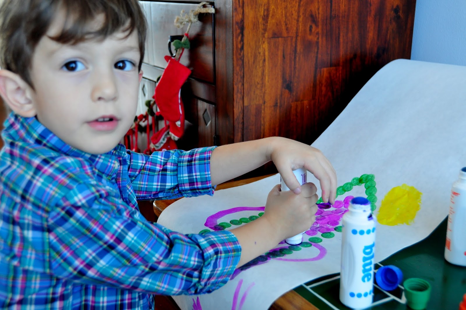 Aunt Sandra, Uncle Shawn, Roman and Isla sent the boys art supplies and these awesome paper rolls. This has since became our favorite spot in the house and the boys are constantly hanging out here.