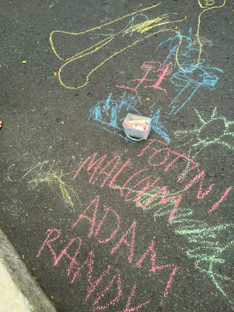 Yes, vacation photos are coming….but in the meantime here is a super exciting post about chalk. Actually this is more a post about what to do in the Philippines with toddlers…is Adam still a toddler? what comes after toddler? kid?? tween??.