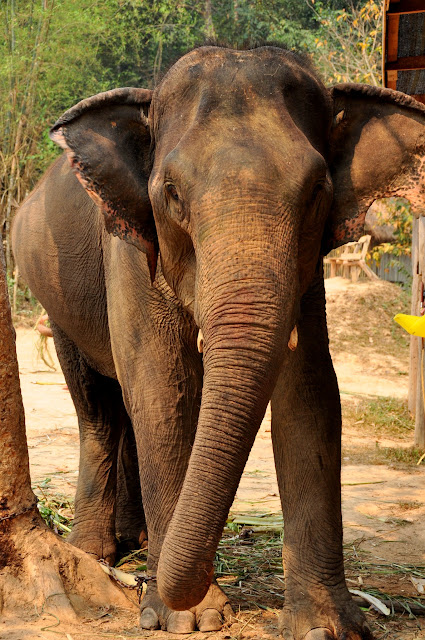 After that we were invited to feed Mae Buakham some bananas to reward her for all the hard work she put in lugging us around. I wasn’t sure if Adam would be into this but after I helped him feed the first one he went ahead and fed all the rest of the bananas all by himself. Malcolm was a little scared and opted to watch Adam instead.