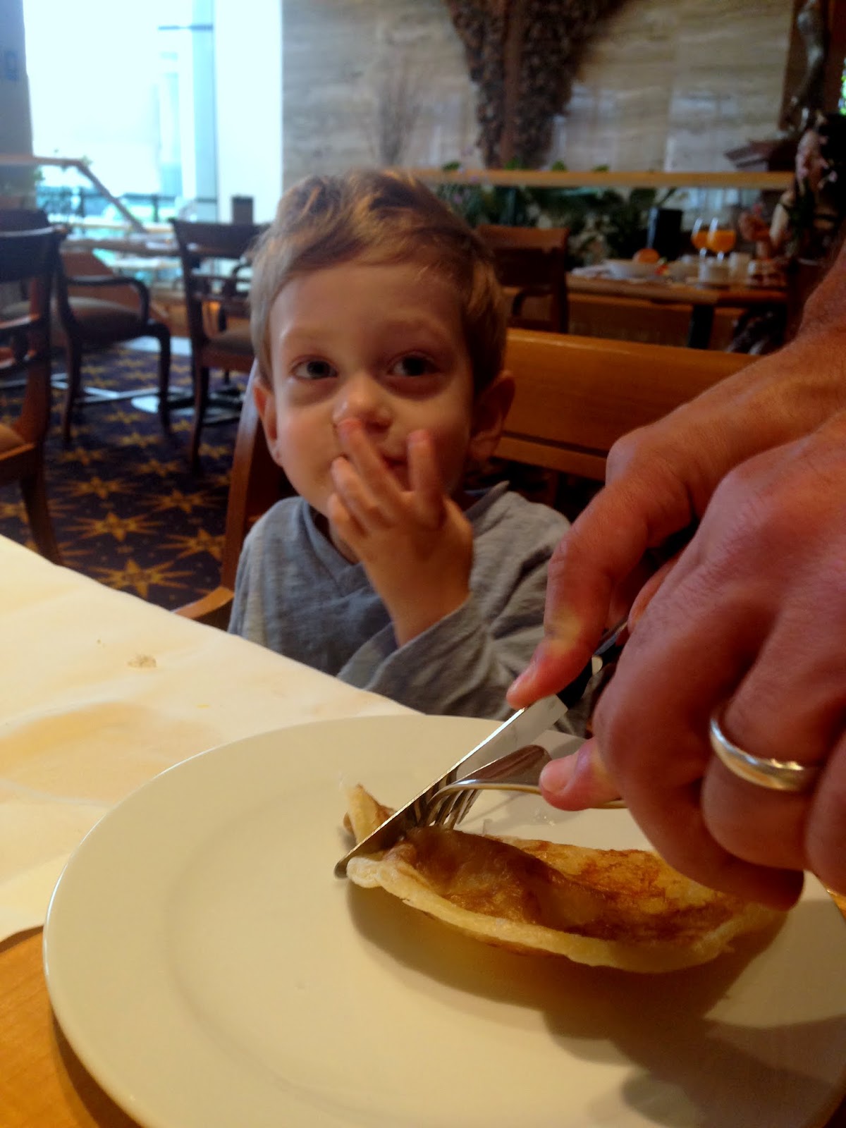 7. While we’re on breakfast buffets, Malcolm learned how to truly manipulate the breakfast buffet, or his parents or perhaps both. By the end of the meal he would have multiple plates of food for sampling and multiple juices.