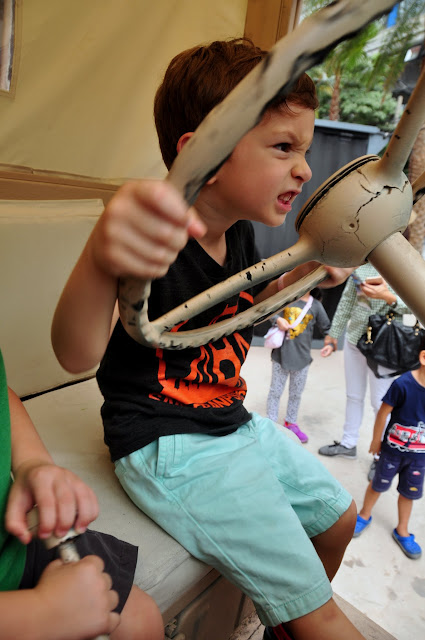 Thankfully instead of waiting on line with daddy to buy tickets we were able to take this jeep out for a spin, Jurassic Park style.