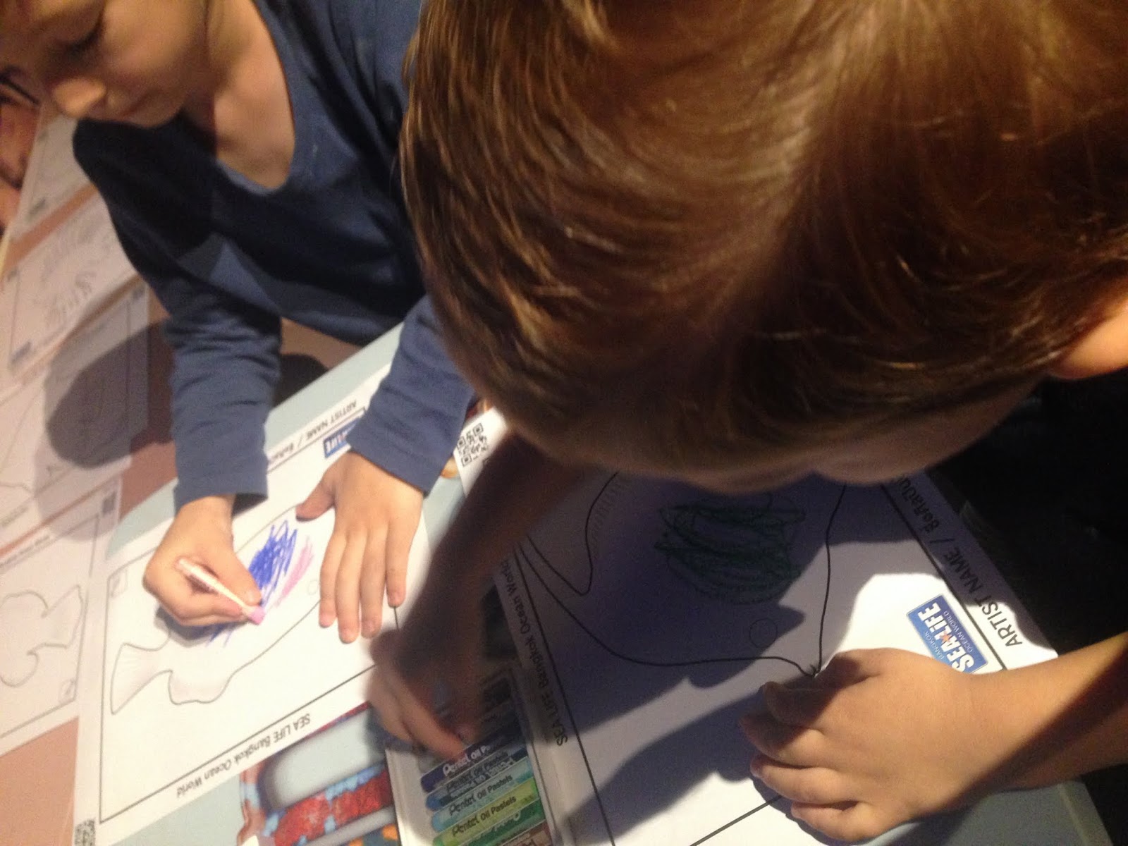 The museum had this awesome activity where you could draw your fish and the museum scans your picture and your fish comes to life and swims away. Each boy must have colored 5 fishes to be scanned. Luckily there wasn’t a line and no one minded.