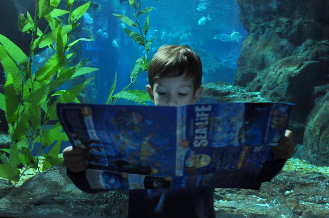 Because the boy had been so great this trip, we decided to treat them to one toy each at the aquarium gift shot. Someone was very excited. Malcolm was excited too, but he napped through our lunch and wasn’t available for photos.