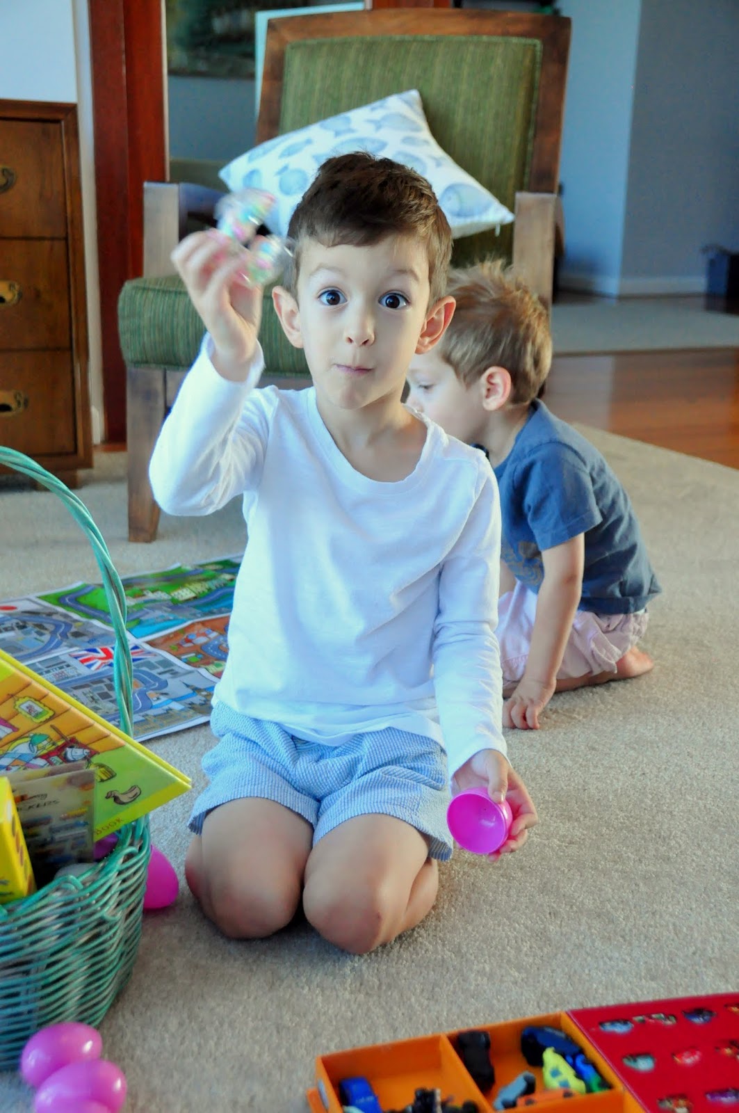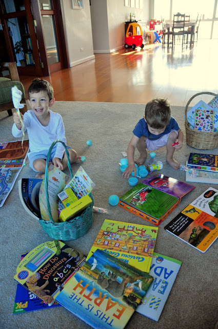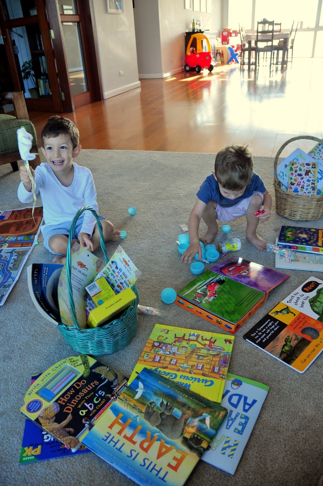 Adam was so excited that the Easter bunny knew their names! The boys are very lucky, Grandma Gertch sends so many books and signs them all for the boys. Sorry Grandma, the Easter Bunny may have taken credit for this one 🙂