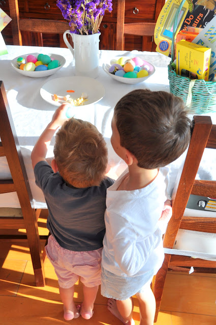 This color coded egg plan (yes, I know I’m crazy) went wonderfully! There was no fighting over eggs and Adam helped Malcolm find his when he was done.