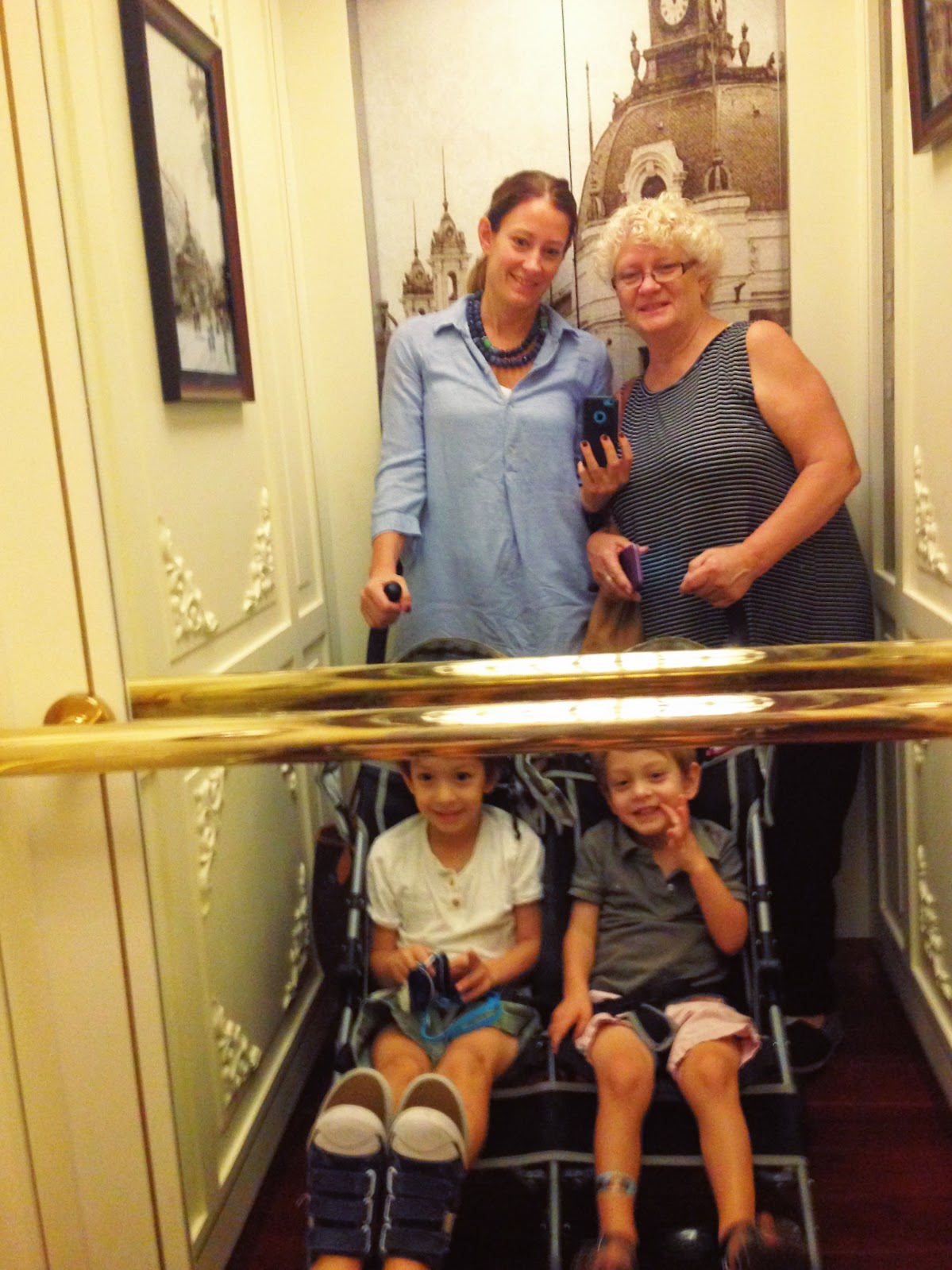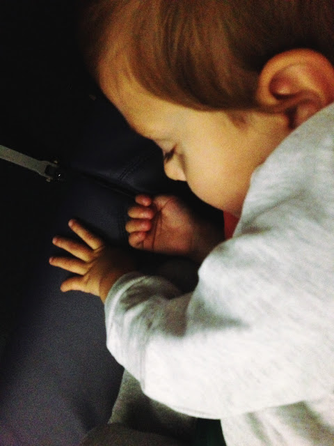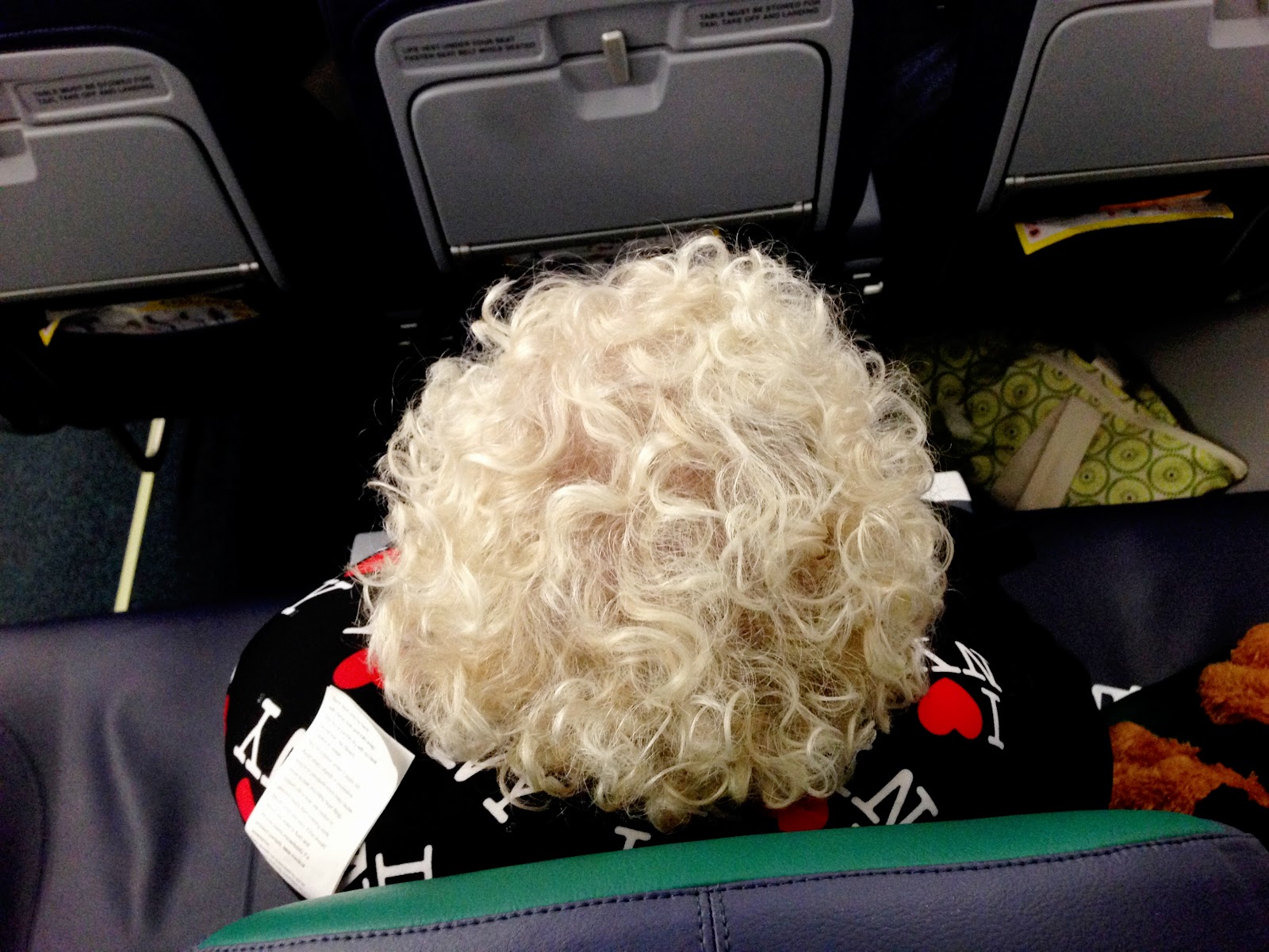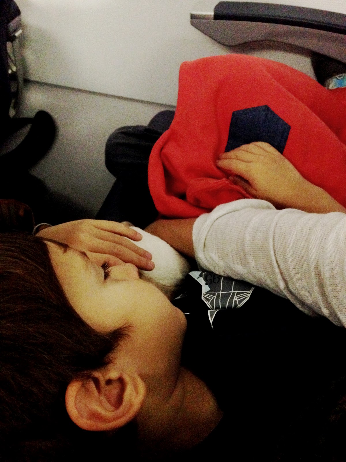 The plane was empty, so both boys wanted to sit next to mommy, leaving Grandma Gertch all alone with loads of room to sleep!