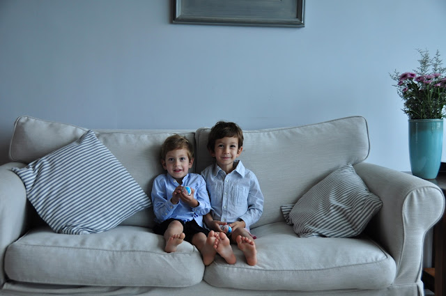 I have pretty much given up on getting the boys to wear button down shirts. We have a full on rebellion and don’t like ‘fancy’ shirts. Well we headed off to get dressed before a little party our friend invited us to in the building and Randy out of normal said if you were a nice shirt you can get a kinder egg. He pulled out all the stops and I love him for it. It’s me who wants the boys in a fancy shirt and its me who wants to take pictures with the fancy shirts but Randy gets that!
