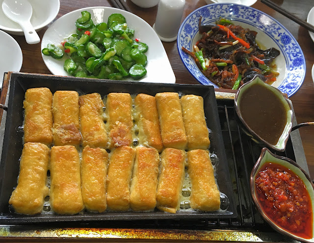 After our long walk through, it was time to warm up at lunch with some flower tea, fried tofu, glass noodles, pickled cucumbers and Malcolm’s favorite- noodle soup.