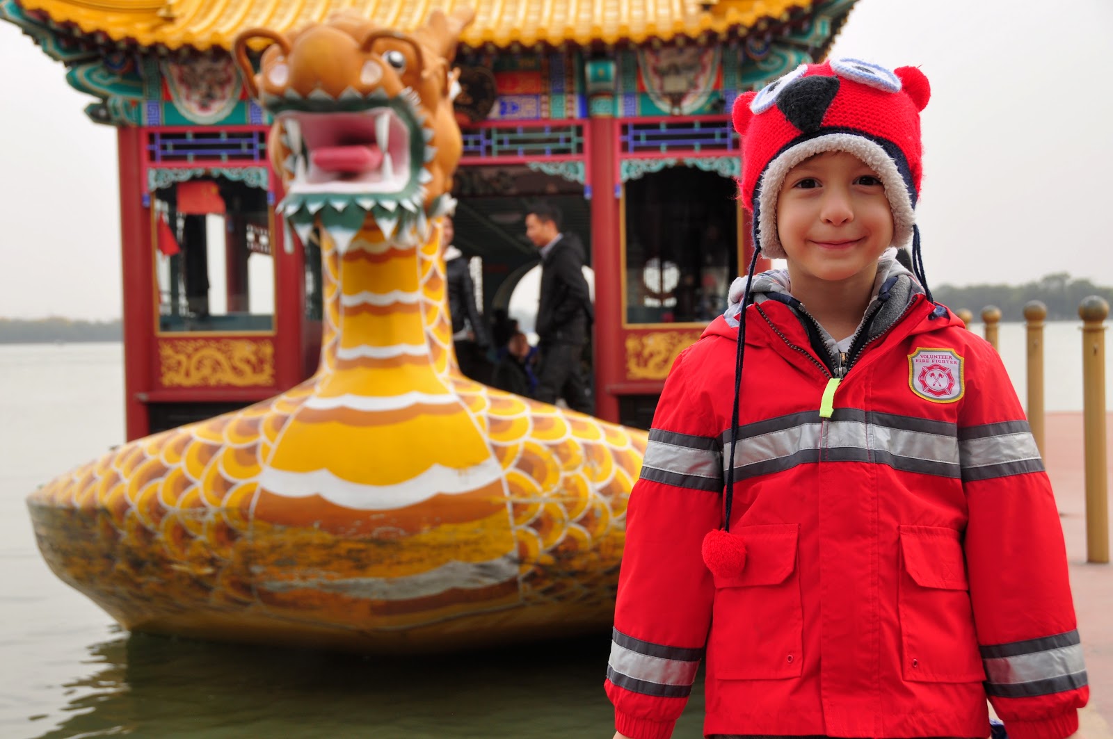 At the end of the walk we got to take a dragon boat back to the start. Here is Adam’s best dragon face. This was definitely Adam’s favorite part of the day!