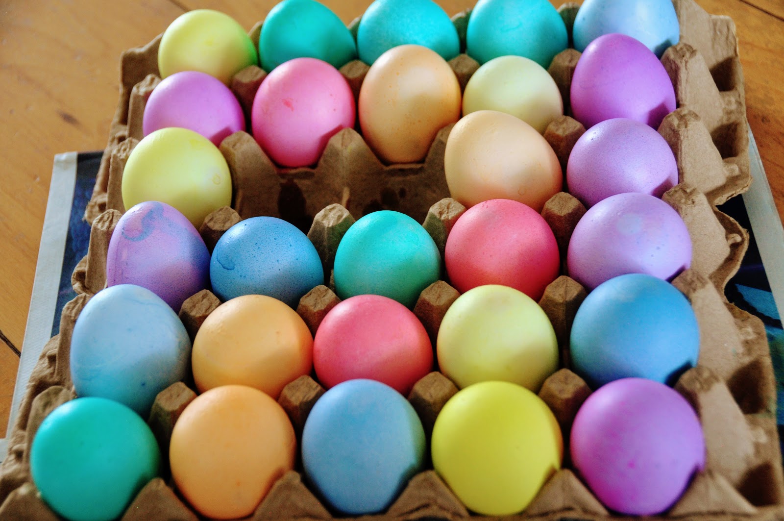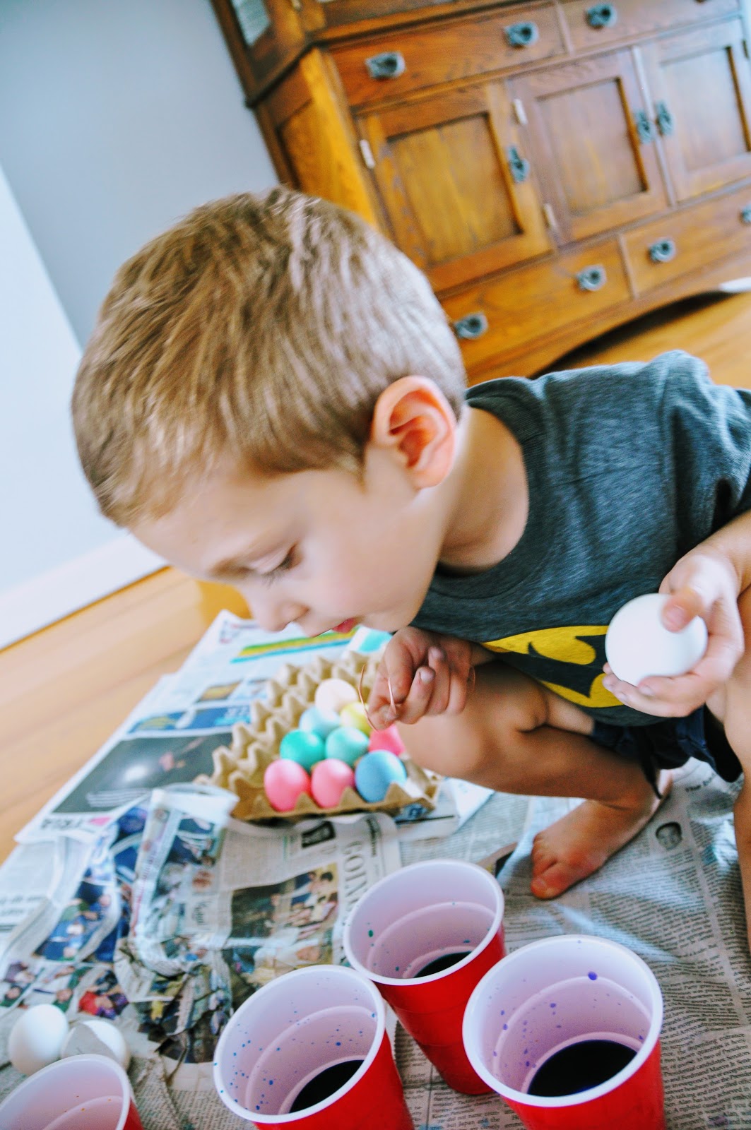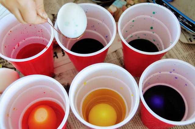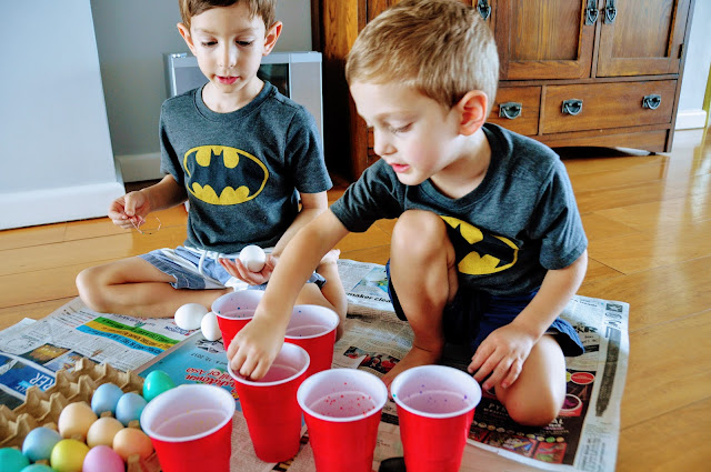 This year Malcolm was old enough to really get it. He loved plopping those eggs in. Adam would color one egg at a time, and slowly dye it to the exact shade he wanted. Malcolm would plop those eggs in wherever there was room. So interesting how different their little personalities are!