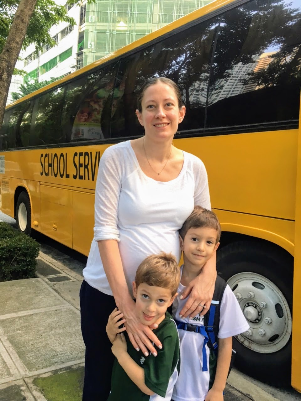 The next day, was another big day. Adam took the bus for the first time. We all walked him down and Malcolm again wanted to wear his ‘uniform’ . Malcolm wanted to go on the bus too but was satisfied with a tour. Adam got right on the bus and was so excited to go. His 38 week pregnant mom might have shed a tear or two. I can’t believe this boy who started as a little teeny peanut is now big enough to take the bus.